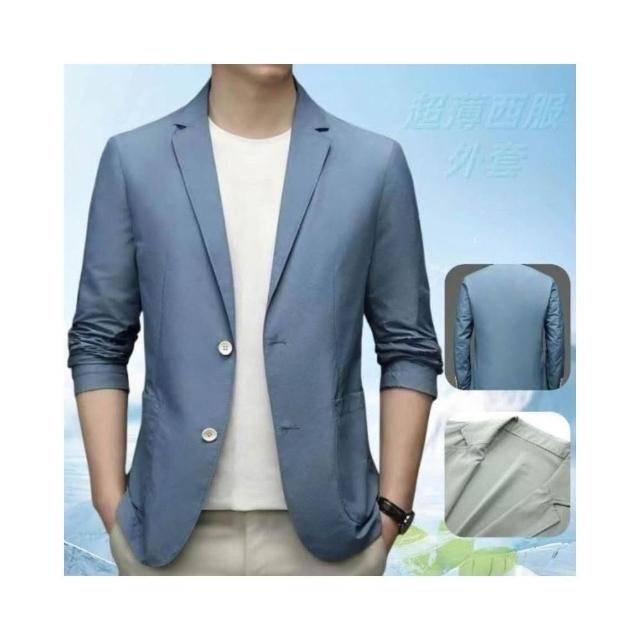 西裝外套男士防曬外套男薄外套涼感速乾西裝外套休閒修身冰絲運動外套商務夾克西服外套翻領工作外套夏季休閒西服透氣寬鬆小西裝男