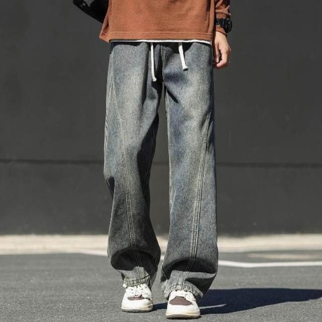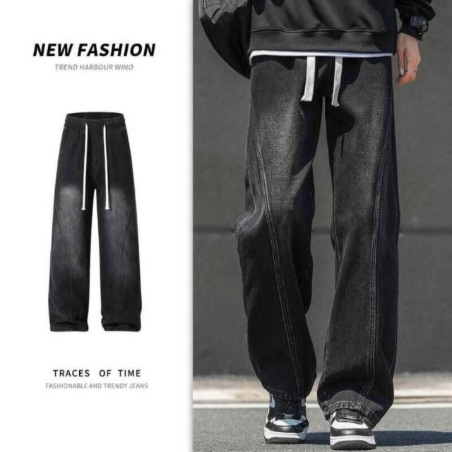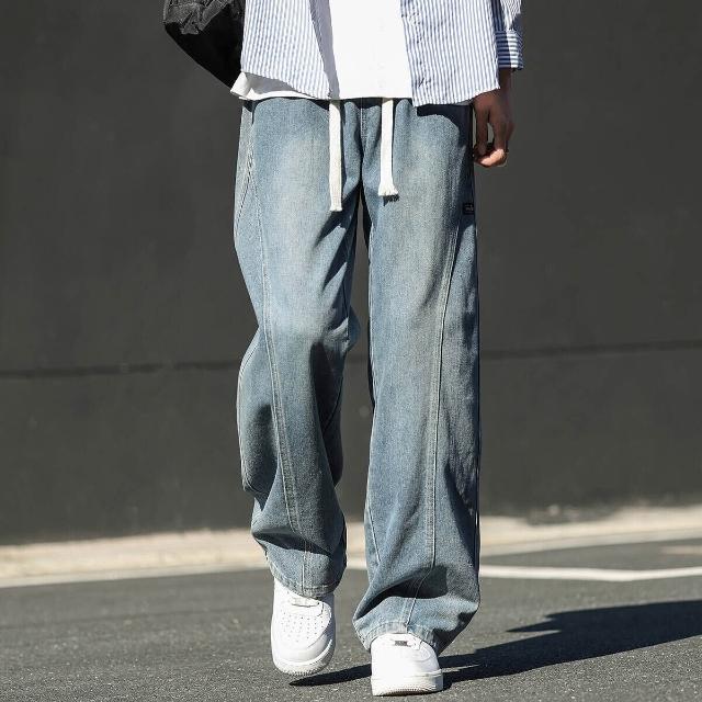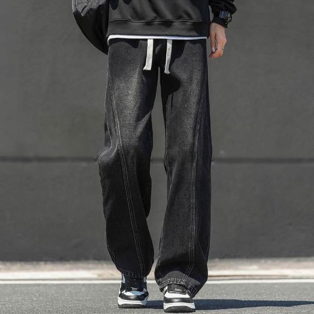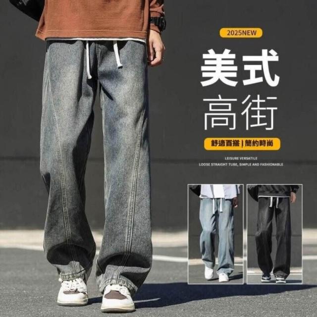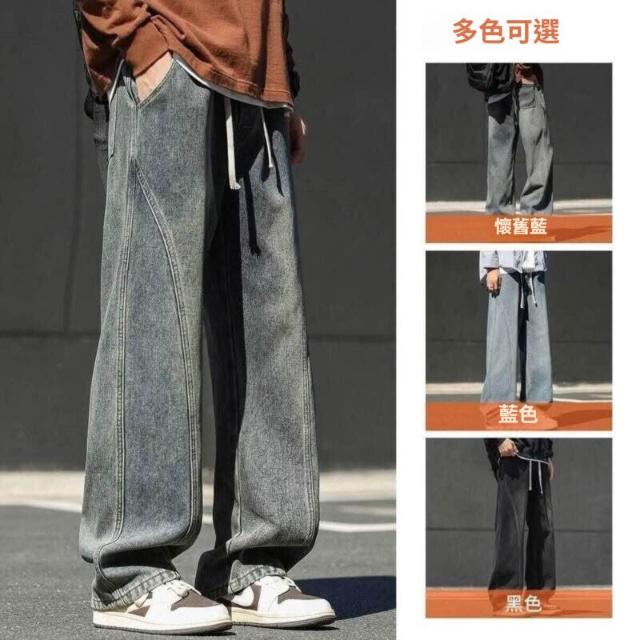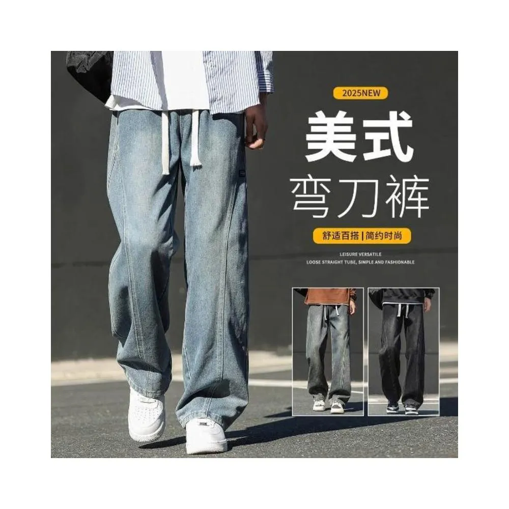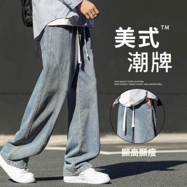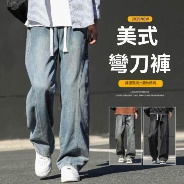 牛仔褲男美式男長褲透氣彎刀褲寬鬆運動長褲男登山大尺碼休閒褲時尚百搭工作褲直筒柔軟舒適夏天彈力男裝下著青年學生闊腿男生褲子