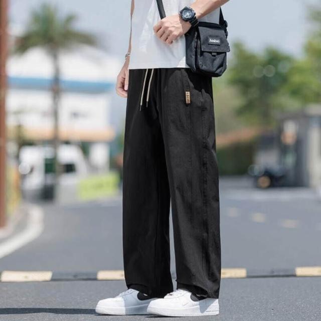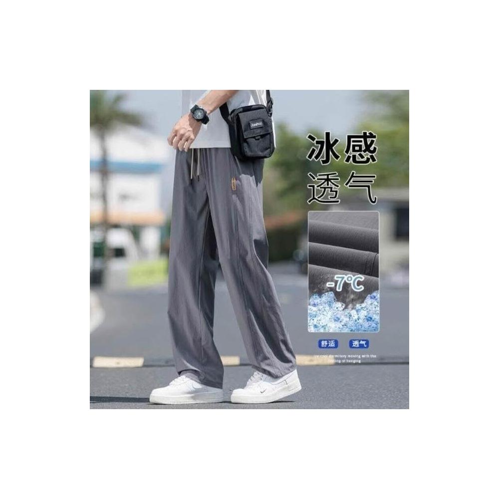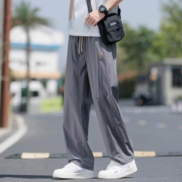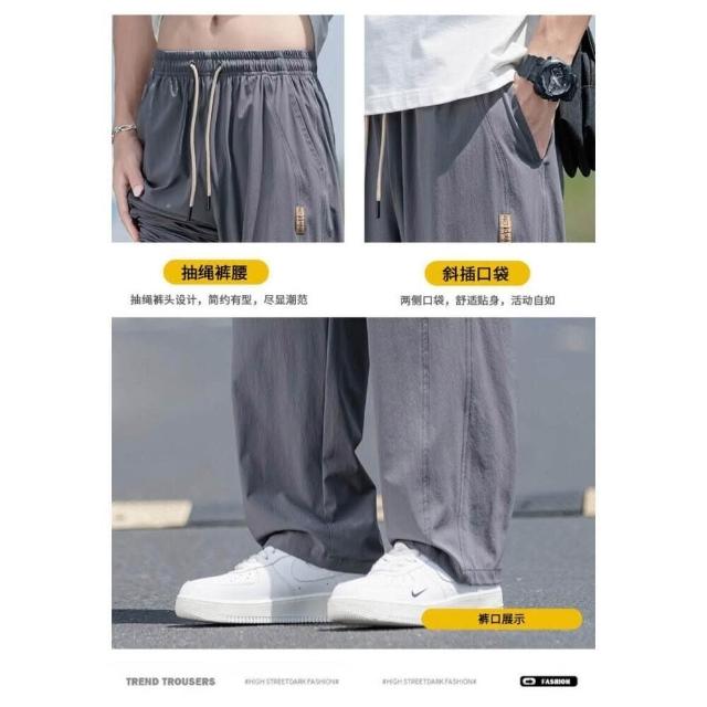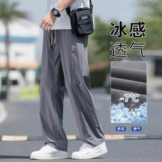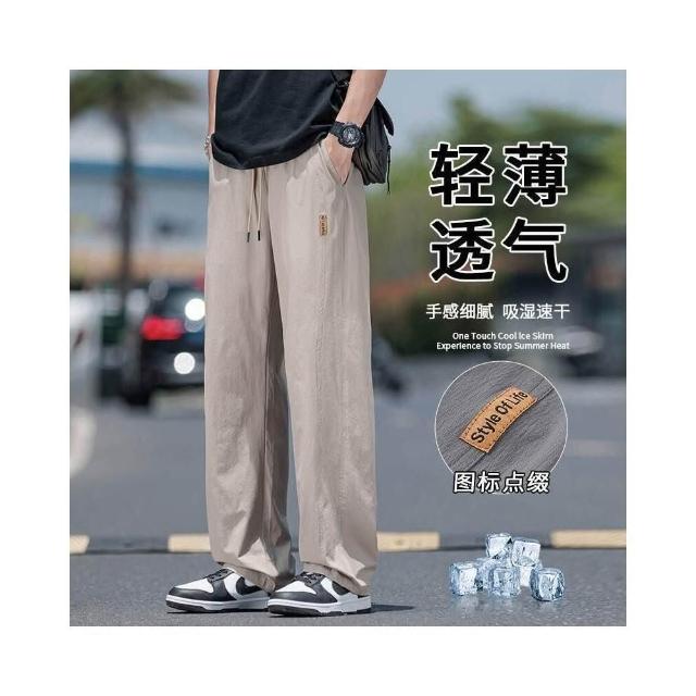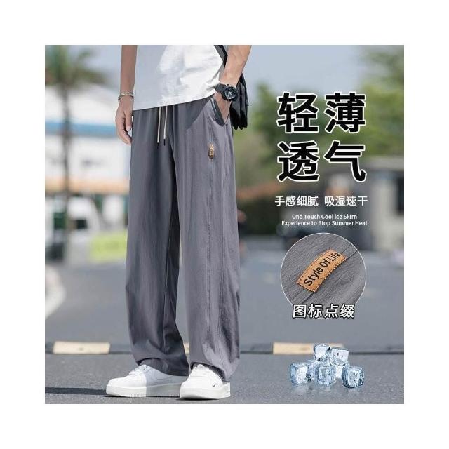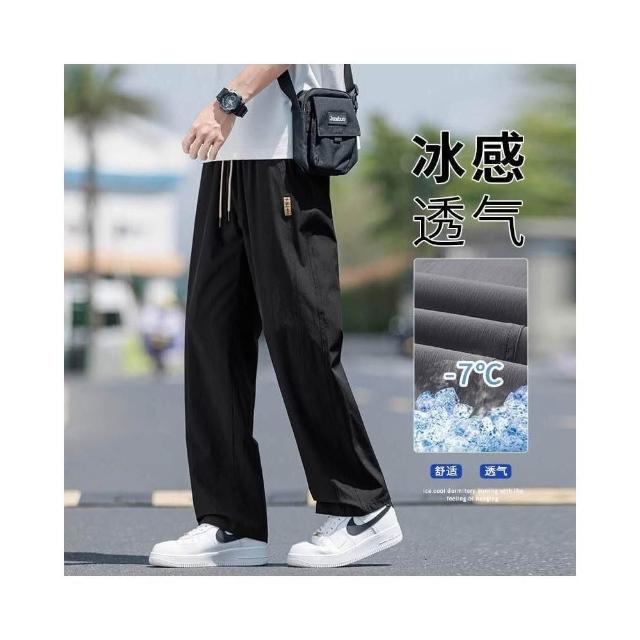 休閒褲男涼感褲美式冰絲大尺碼男長褲寬鬆直筒夏天運動長褲速乾工作褲登山跑步冰涼褲男士褲子透氣彈力男裝下著寬褲薄長褲耐磨寬褲