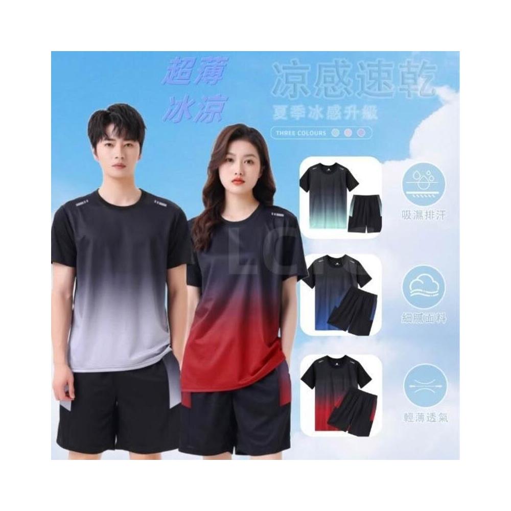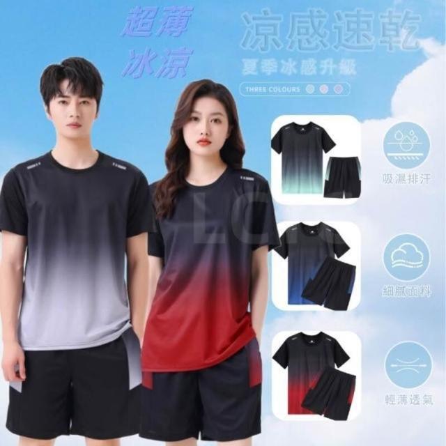 運動套裝男情侶款夏天涼感冰絲套裝速乾套裝女休閒套裝羽球衣羽球褲男籃球衣籃球短褲吸濕排汗服彈力透氣夏季兩件式套裝