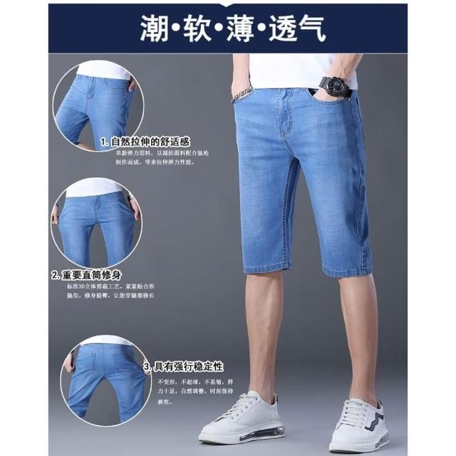 牛仔短褲男運動寬褲闊腿男士短褲商務休閒工作褲五分褲水洗做舊涼感跑步登山褲夏天大尺碼寬鬆輕薄透氣吸濕排汗男生短褲彈性沙灘褲