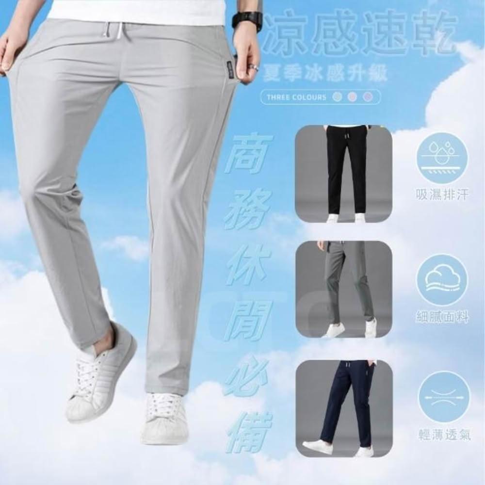 涼感褲男薄款西裝褲速乾長褲冰絲長褲涼感長褲吸濕排汗長褲男彈力休閒褲夏季透氣長褲直筒平口褲闊腿長褲西褲男士長褲