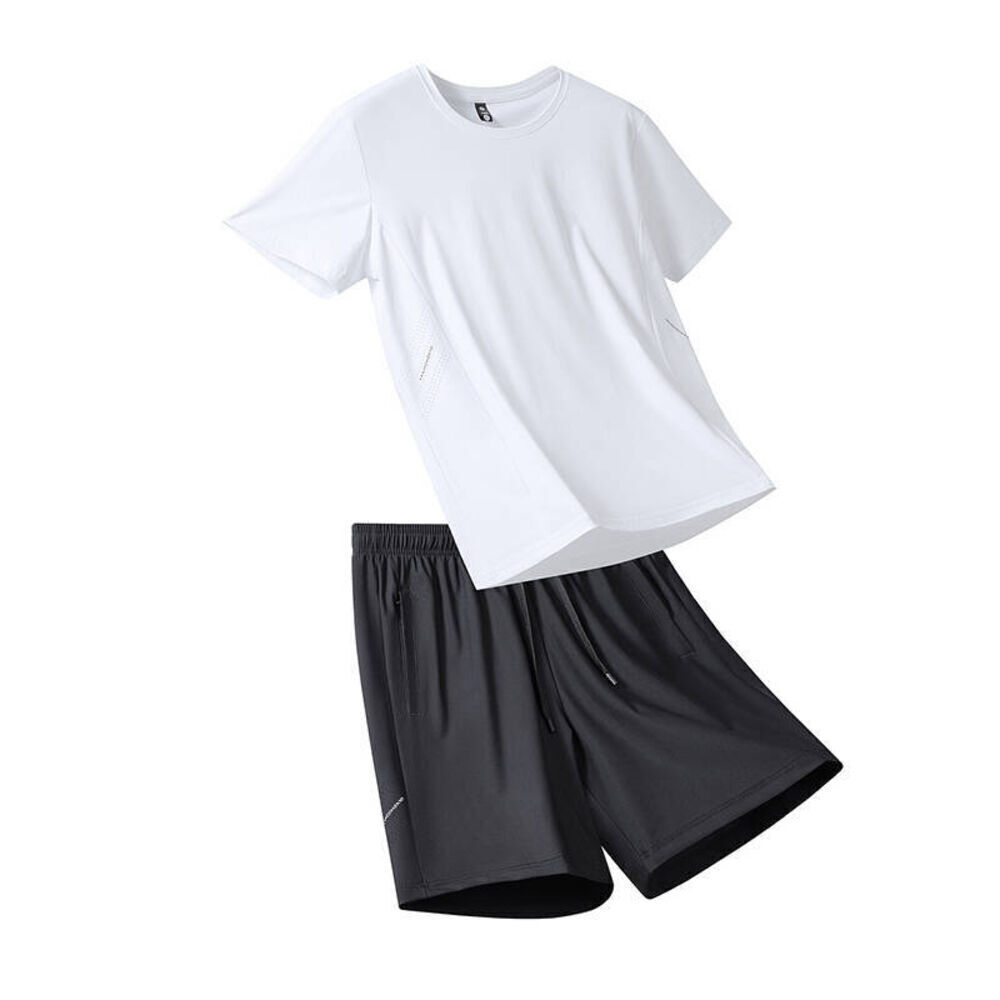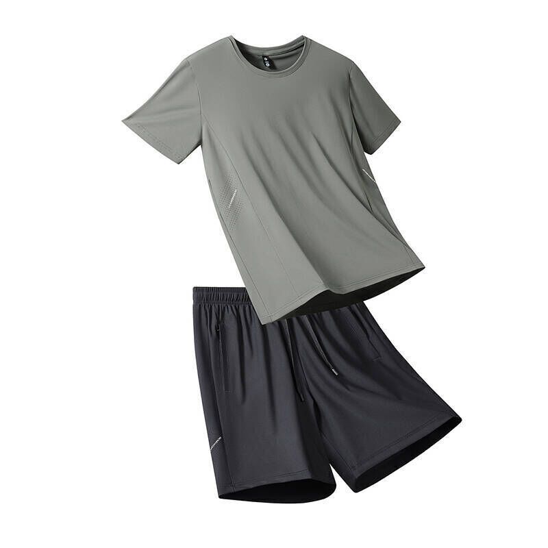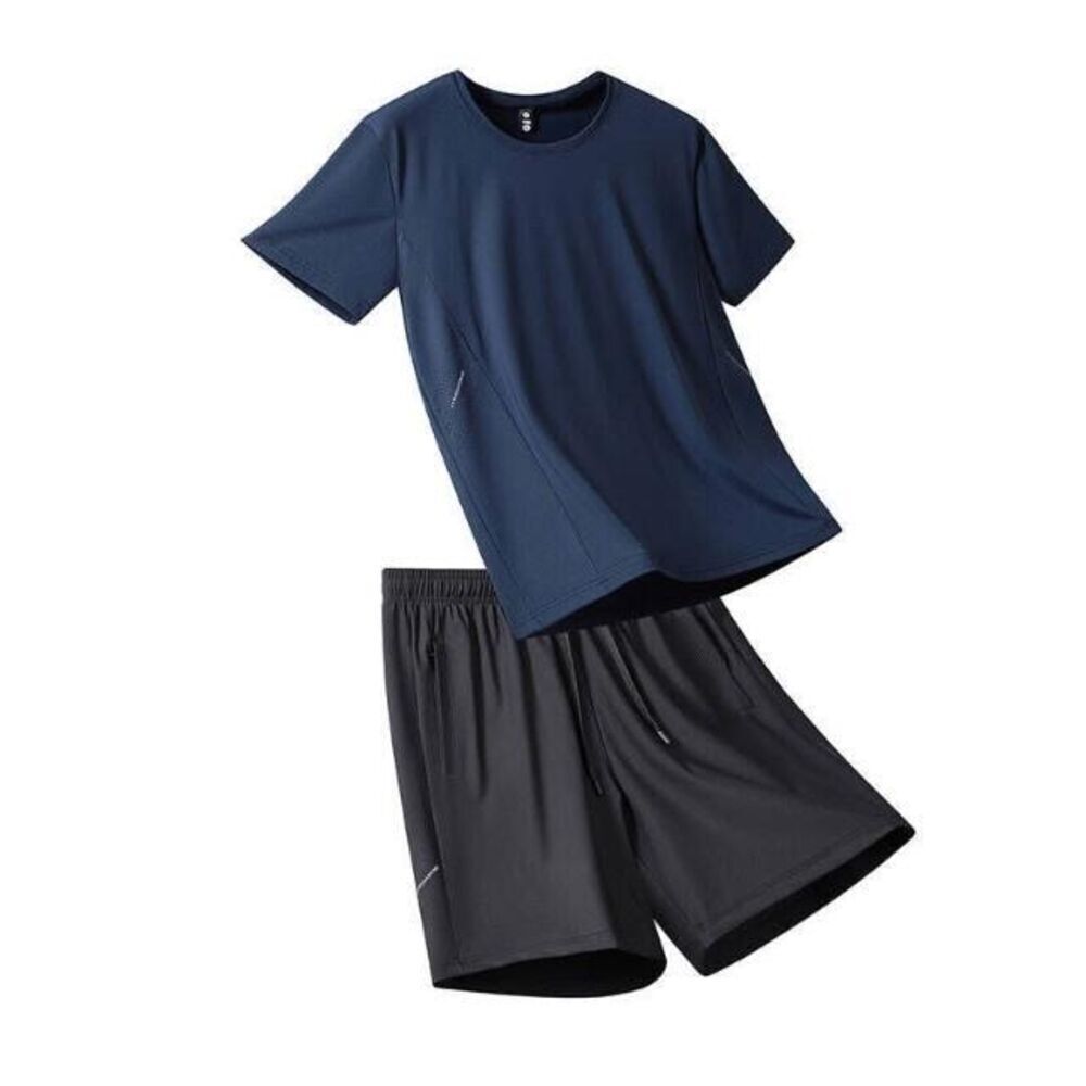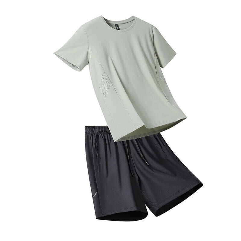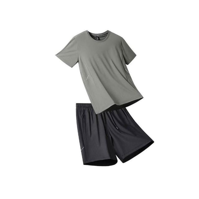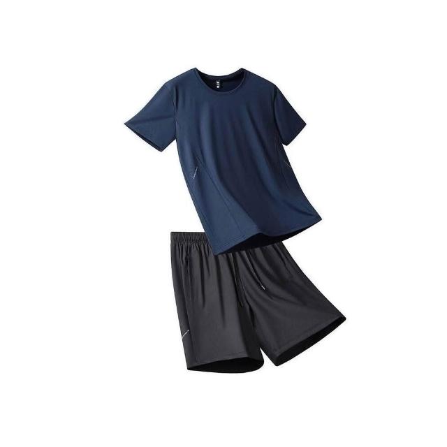 運動套裝男夏天輕薄透氣網眼冰絲衣吸濕排汗短袖速乾衣速乾T恤男士大尺碼戶外工作健身登山休閒服排汗衣寬鬆彈力冰絲涼感運動上衣