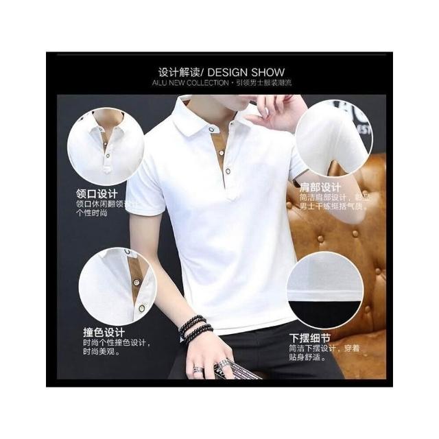 polo衫男短袖夏季薄款寬鬆透氣Polo男士吸濕排汗v領POLO衫白色t恤夏天翻領高爾夫球衫顯瘦防皺休閒上衣大尺碼男裝T