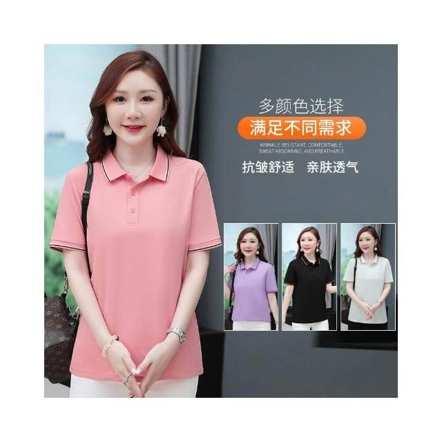 短袖polo衫女大尺碼冰絲涼感衣夏天吸濕排汗運動薄款上衣媽媽高級感年輕女裝t恤速乾透氣商務修身正肩短袖女款高爾夫球羽球衣