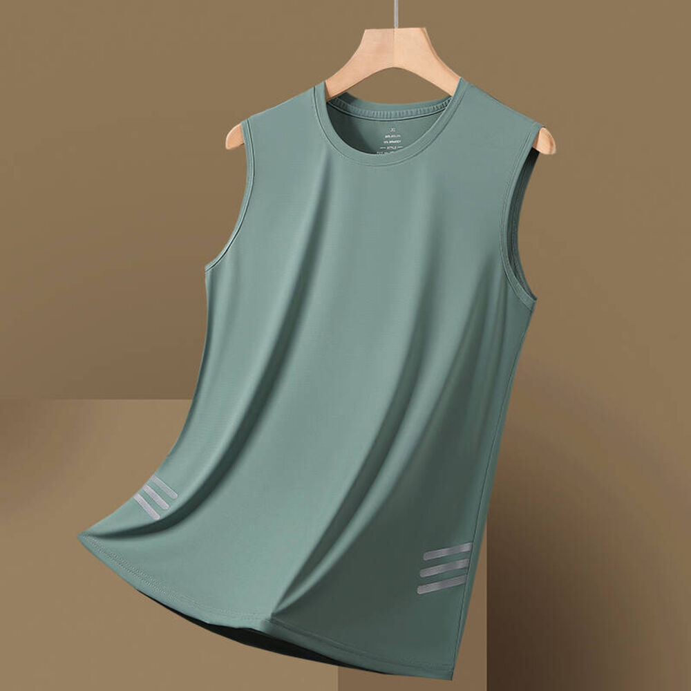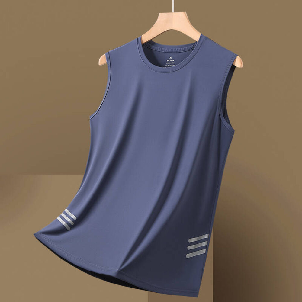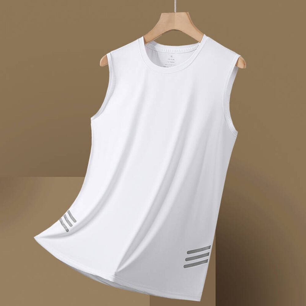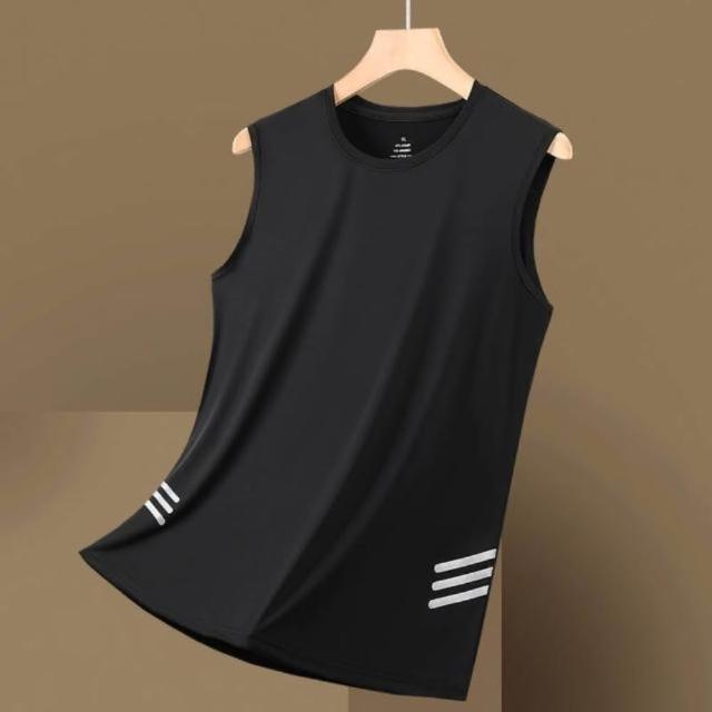 背心男冰絲汗衫背心男夏天輕薄透氣網眼冰絲衣吸濕排汗短袖大尺碼休閒服工作健身登山排汗衣寬鬆彈力冰絲涼感運動速乾無袖t恤青年