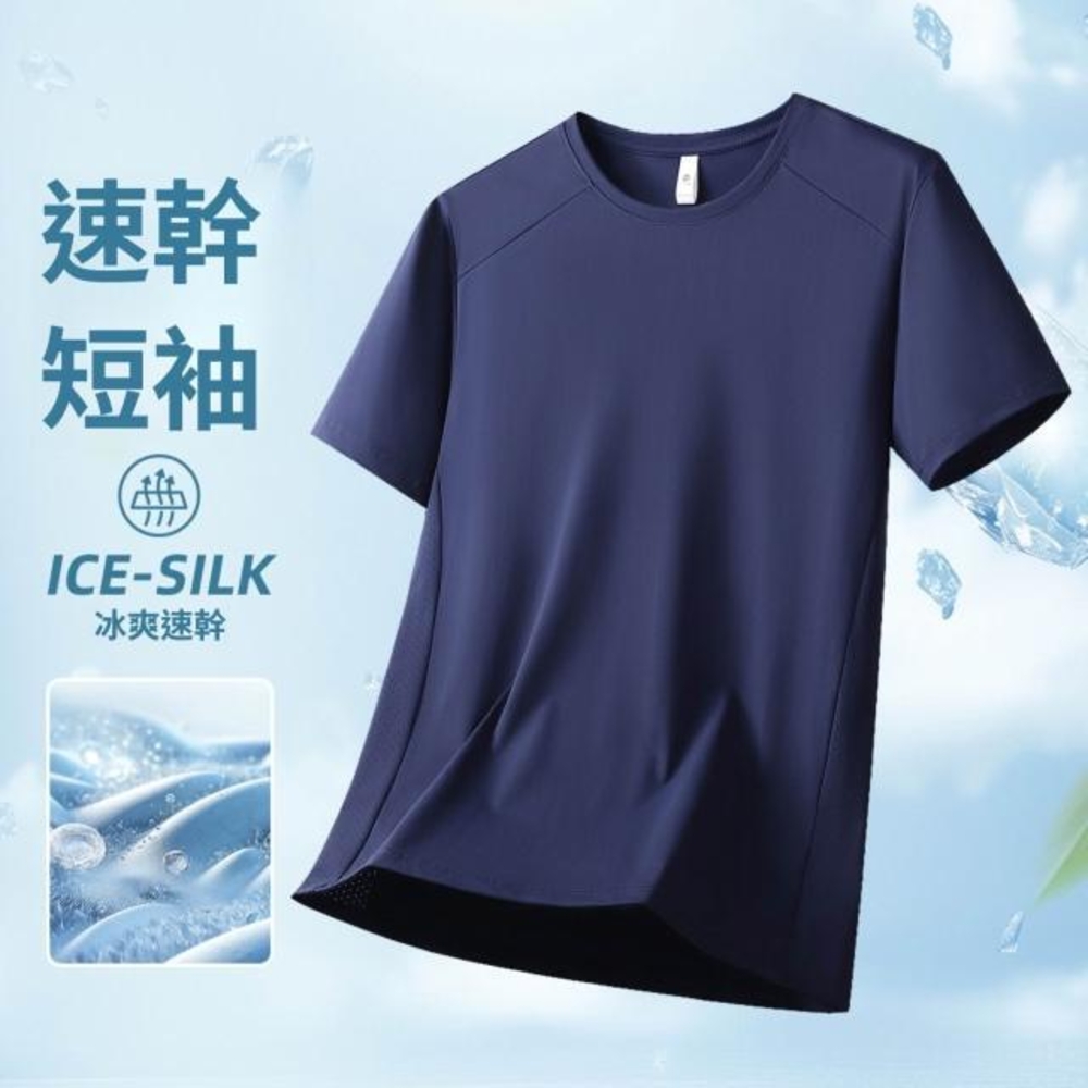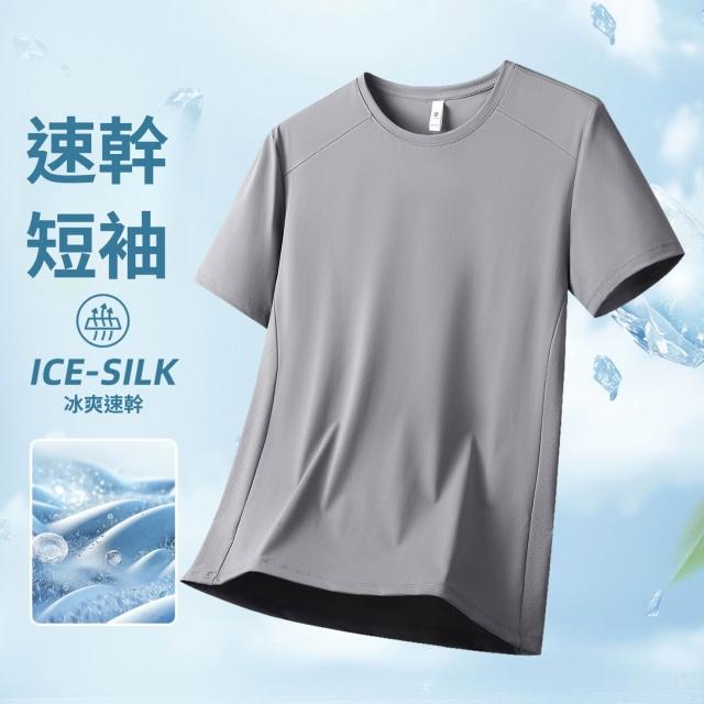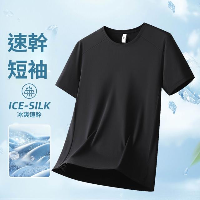 短袖上衣男涼感衣男夏天輕薄透氣網眼冰絲衣吸濕排汗短袖速乾衣大尺碼健身登山休閒服排汗衣冰絲寬鬆彈力涼感運動上衣速乾T恤青年
