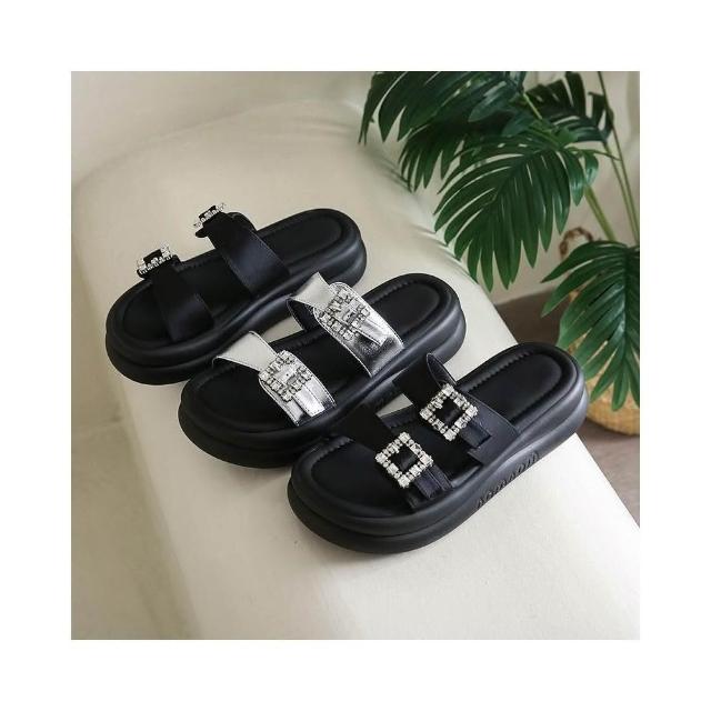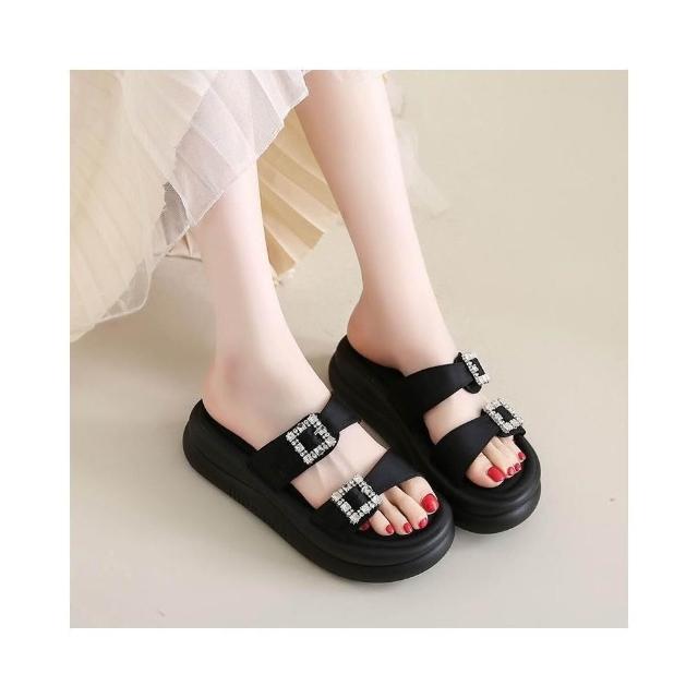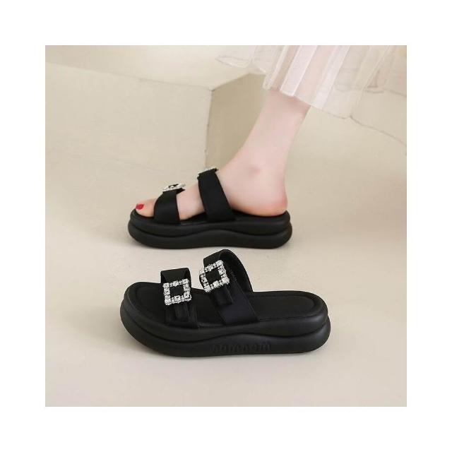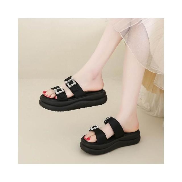涼鞋女夏季寬楦舒適運動拖鞋防滑耐磨厚底涼鞋韓國黑色輕量透氣涼拖鞋一腳蹬懶人鞋娃娃鞋增高厚底鞋沙灘鞋女涼鞋編織涼鞋包頭涼鞋
