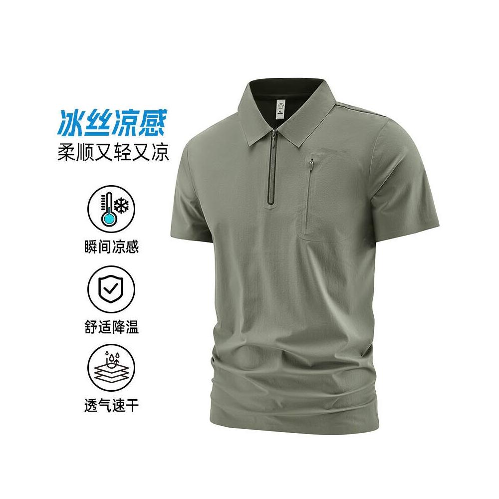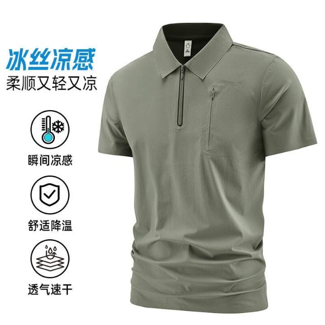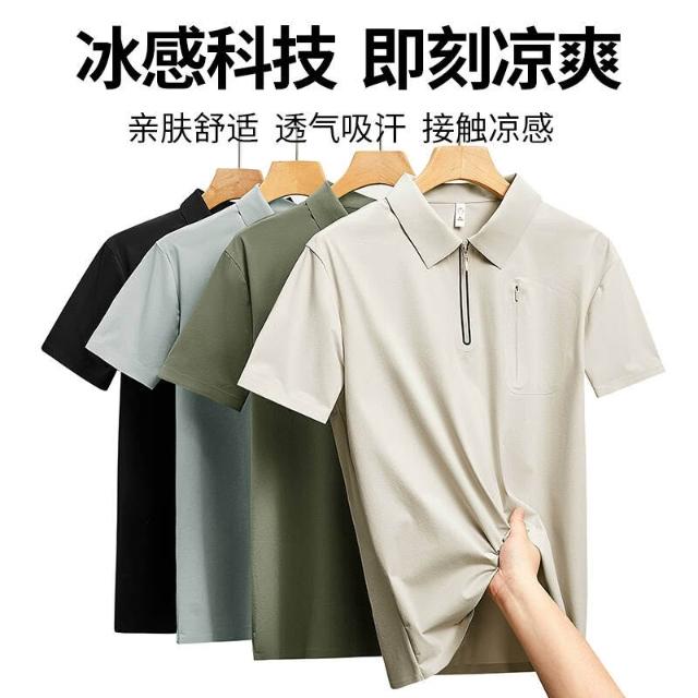 上衣男polo衫運動上衣冰絲涼感短袖夏季寬鬆透氣大尺碼吸濕排汗休閒商務工作寬鬆翻領上衣POLO衫男士薄上衣襯衫領男裝口袋