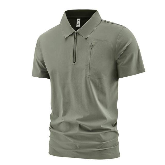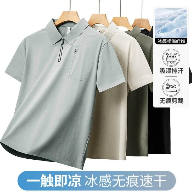 上衣男polo衫運動上衣冰絲涼感短袖夏季寬鬆透氣大尺碼吸濕排汗休閒商務工作寬鬆翻領上衣POLO衫男士薄上衣襯衫領男裝口袋