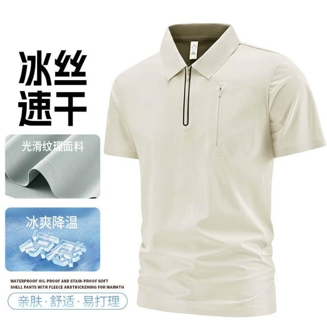 上衣男polo衫運動上衣冰絲涼感短袖夏季寬鬆透氣大尺碼吸濕排汗休閒商務工作寬鬆翻領上衣POLO衫男士薄上衣襯衫領男裝口袋