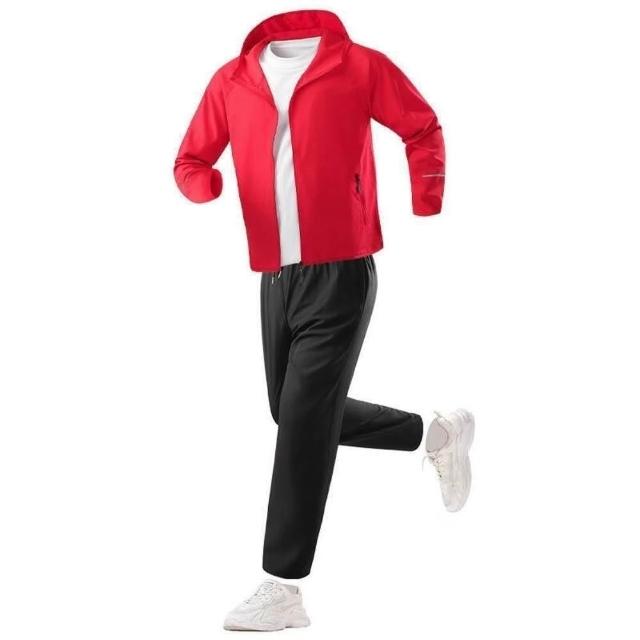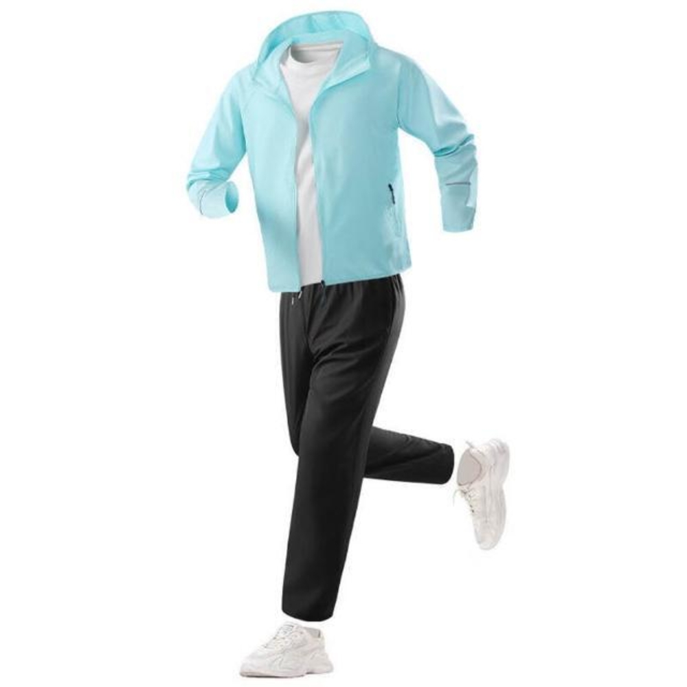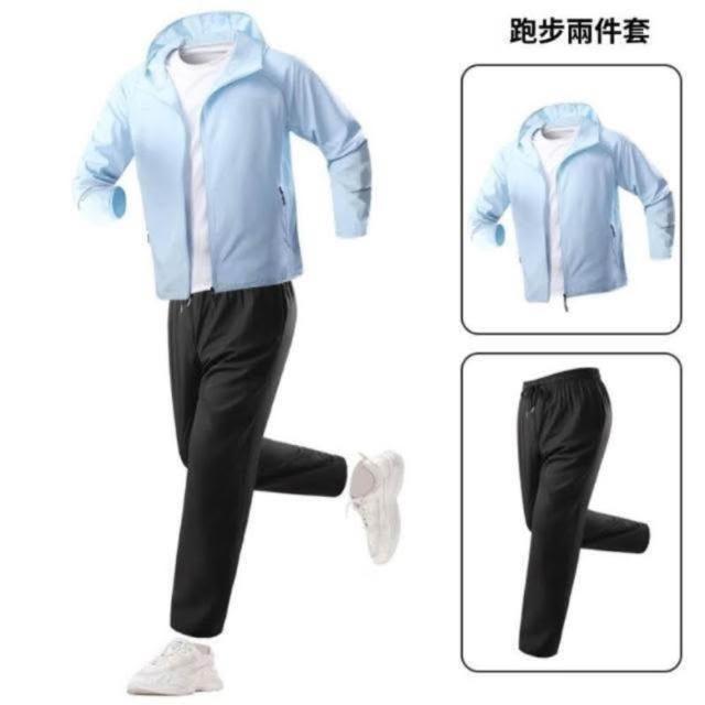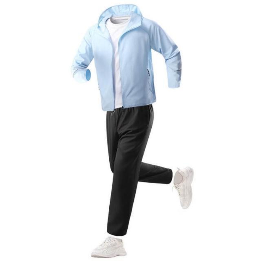 運動套裝韓版寬鬆顯瘦速乾透氣兩件式短袖休閒健身短褲防曬套裝連帽夾克長褲兩件套男戶外防紫外線皮膚衣套裝防曬衣套裝速乾衣男女