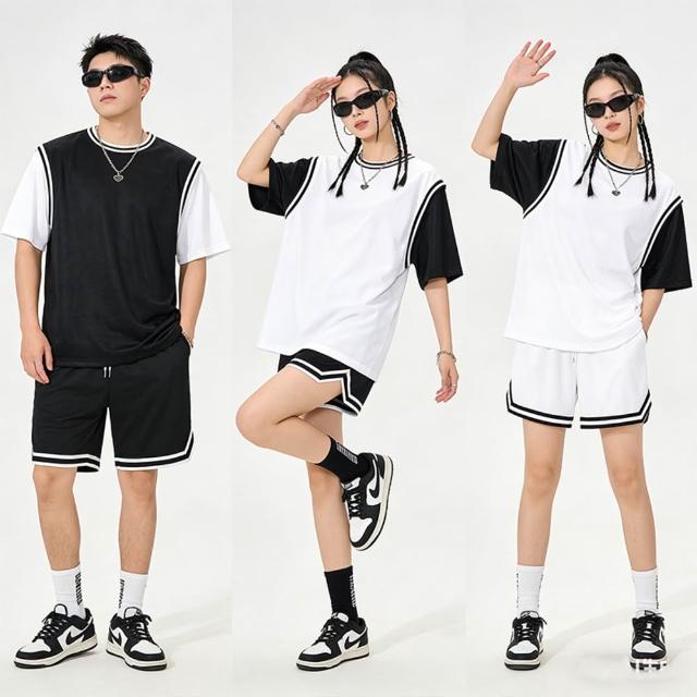運動套裝女冰絲短袖籃球褲夏天圓領籃球衣速乾短袖T恤寬鬆運動背心吸濕排汗健身跑步登山籃球短褲網眼透氣訓練服大尺碼馬拉松短褲