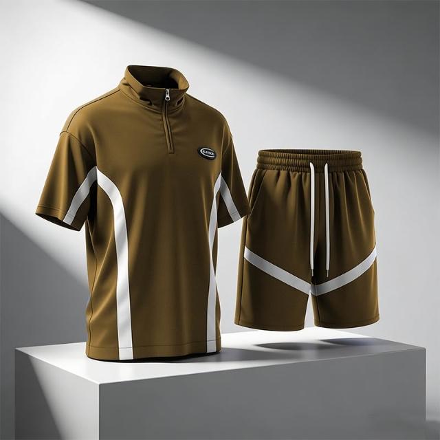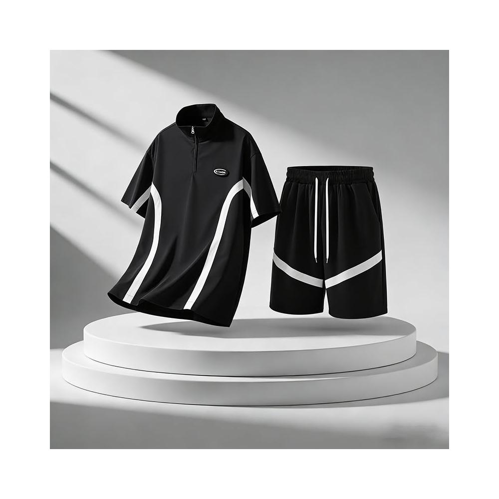 運動套裝女男冰絲短袖上衣速乾涼感衣輕薄透氣寬鬆套裝五分短褲夏天休閒套裝吸濕排汗polo短袖運動短褲戶外登山釣魚情侶兩件套