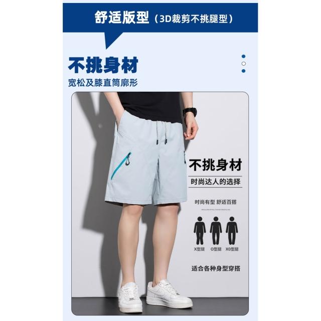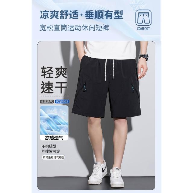 短褲男休閒褲冰絲涼感褲夏天運動短褲大尺碼速乾工作褲五分褲工裝褲多口袋登山褲跑步褲吸濕排汗直筒寬褲輕薄網眼透氣健身褲沙灘褲