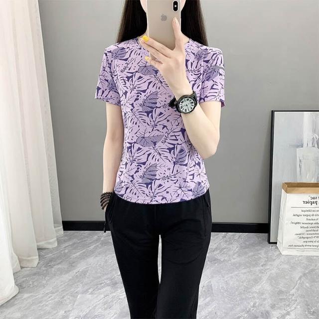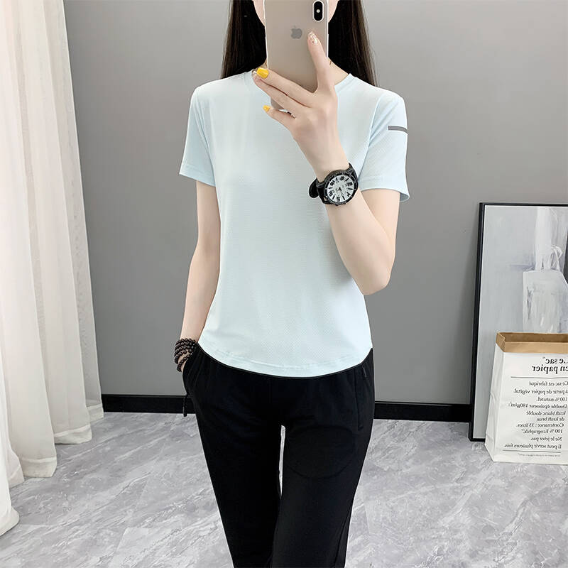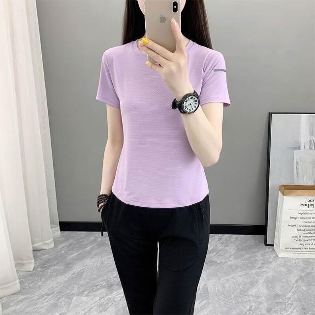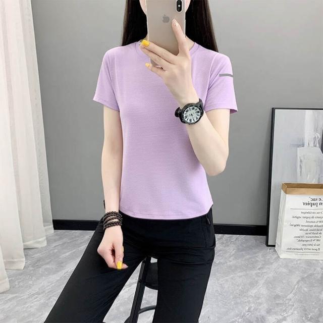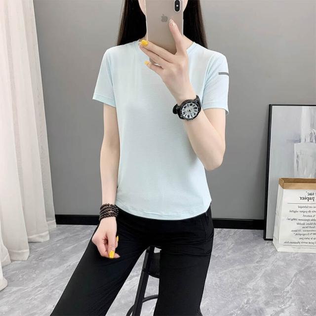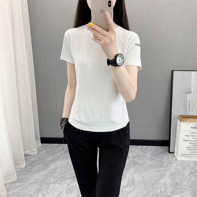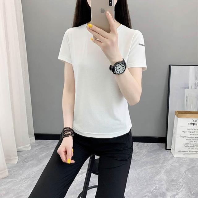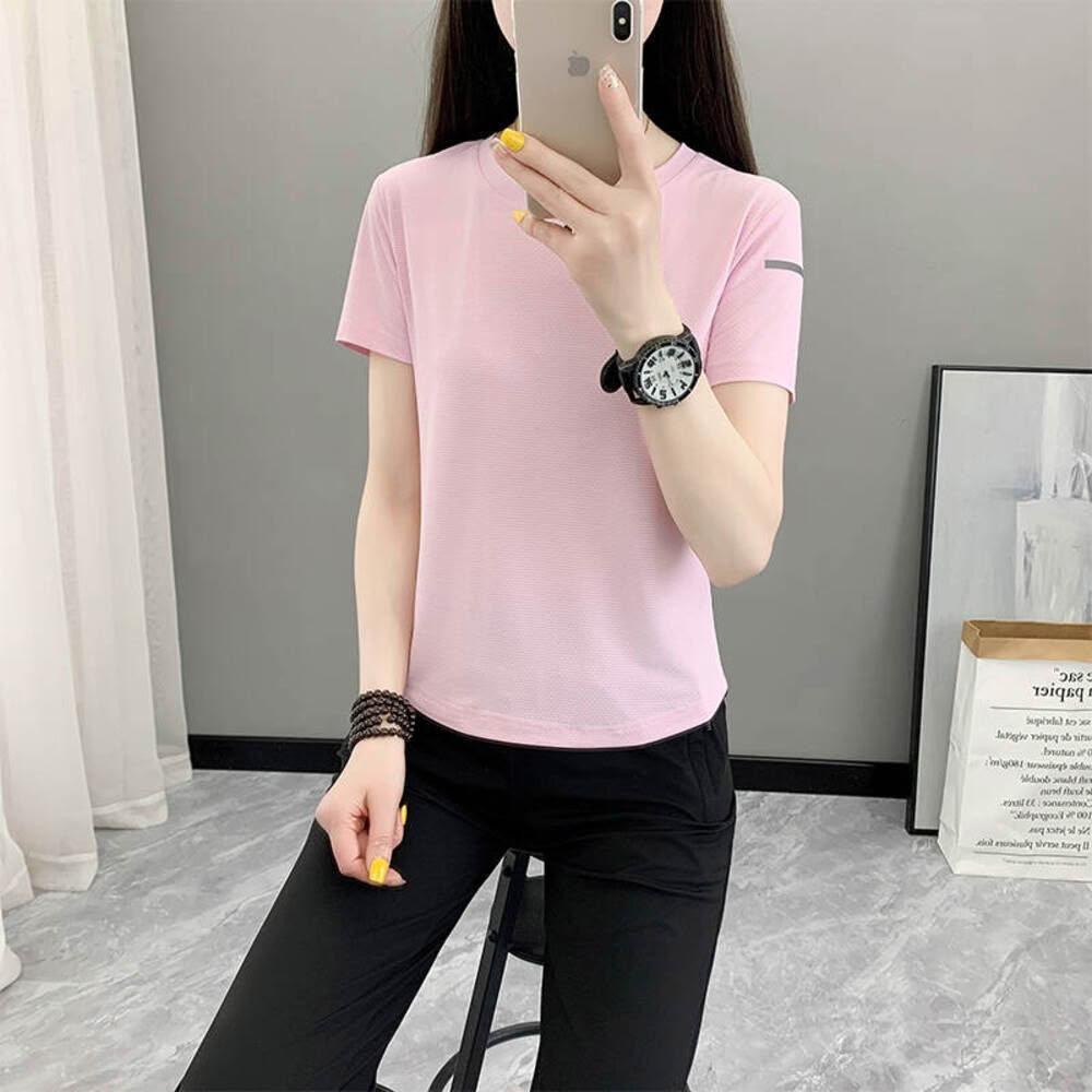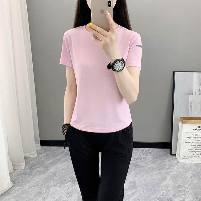 短袖上衣女涼感衣大尺碼運動短袖寬鬆冰絲t恤跑步健走吸濕排汗衣冰涼休閒上衣透氣彈力速乾衣戶外跑步登山健身薄短袖T恤排汗上衣