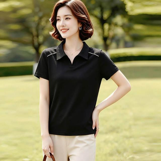 polo衫女上衣涼感衣冰絲運動上衣大尺碼休閒短袖夏天透氣寬鬆通勤翻領上衣吸濕排汗工作寬鬆POLO衫薄上衣氣質百搭短袖上衣