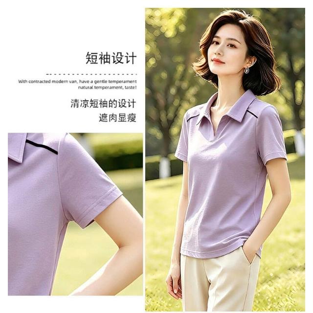 polo衫女上衣涼感衣冰絲運動上衣大尺碼休閒短袖夏天透氣寬鬆通勤翻領上衣吸濕排汗工作寬鬆POLO衫薄上衣氣質百搭短袖上衣