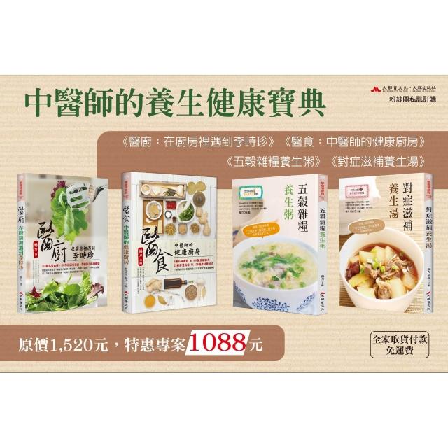 大都會文化《醫廚:在廚房裡遇到李時珍》+《醫食:中醫師的健康廚房》+《五穀雜糧養生粥》+《對症滋補養生湯》