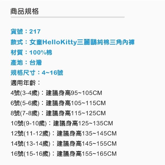 亞蘭夢藤 217-C 台灣製造 Kitty純棉內褲3件組 兒童內褲 女童內褲 kitty 三麗鷗 內褲 217