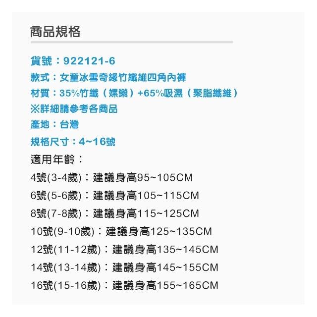 亞蘭夢藤922121-6 台灣製造 冰雪奇緣竹纖維四角內褲2件組 冰雪奇緣 艾莎 內褲 兒童內褲 女童內褲 922121