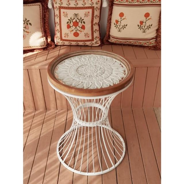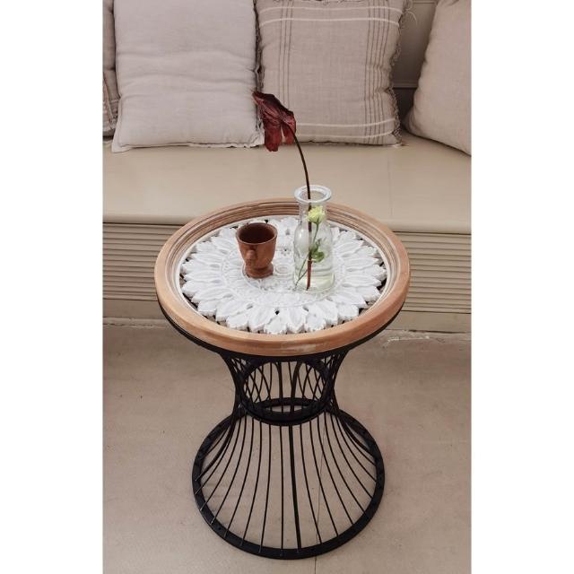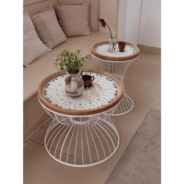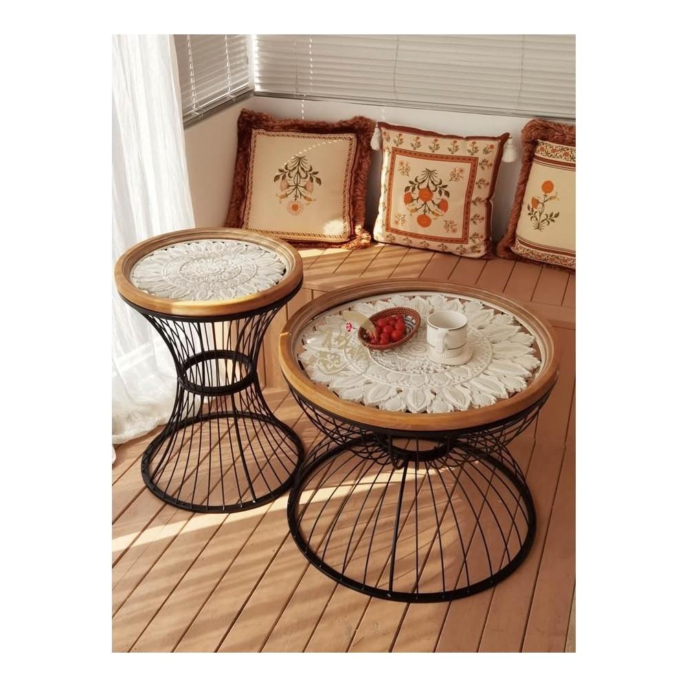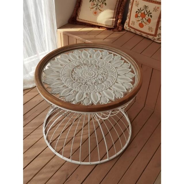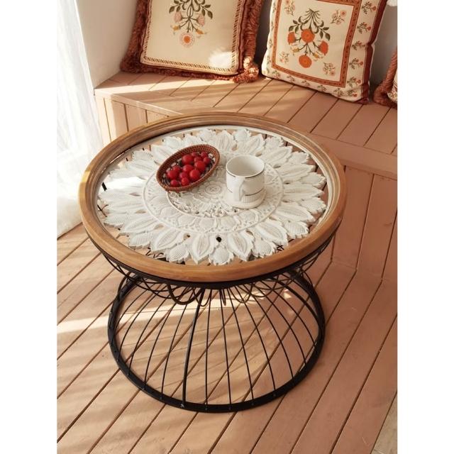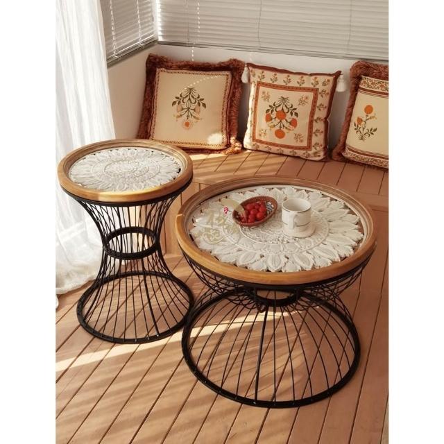 限時下殺 特價款 美式鄉村復古鐵藝雕花圓桌 實木客廳小茶几 沙發邊幾咖啡桌 居家角幾DD27