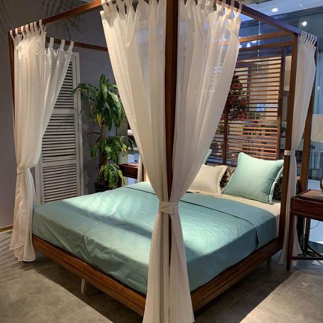 1.5米免運 可開發票 新中式四柱架子床幔 東南亞公主風雪紡紗簾 民宿客棧酒店首選 浪漫紗簾床幔DD27