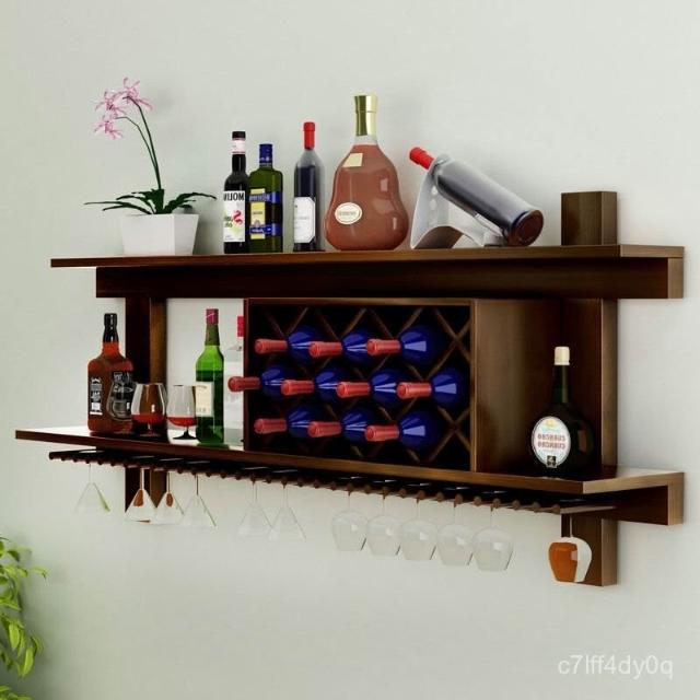 實木酒架 壁掛免打孔 家用餐廳紅酒架置物架 現代簡約菱形酒格 墻壁收納酒櫃DD27