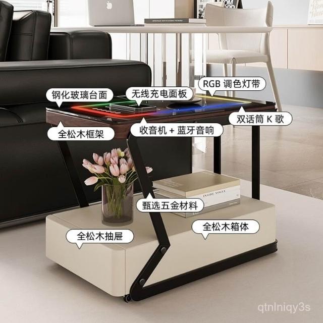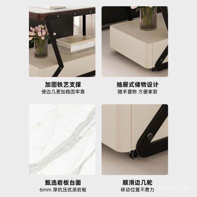 2025新款可移動巖板邊幾 中古風小茶幾 意式極簡客廳邊櫃 小戶型智能傢俱DD0102