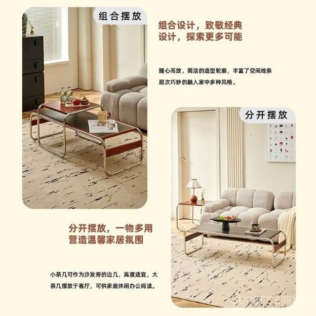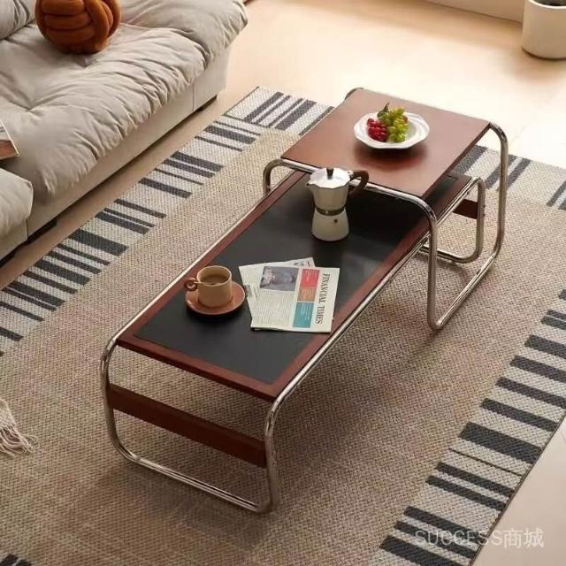 古風複古茶幾組合 小戶型客廳家用 不銹鋼茶臺 長方形巖板小桌子DD0102