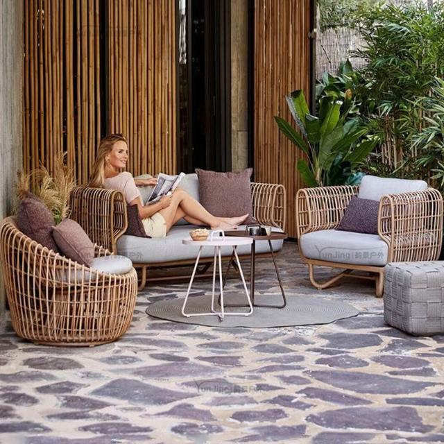 戶外椅花園藝東南亞風格藤編沙發陽臺小茶幾民宿庭院家具桌椅藤制 MMLD1017D