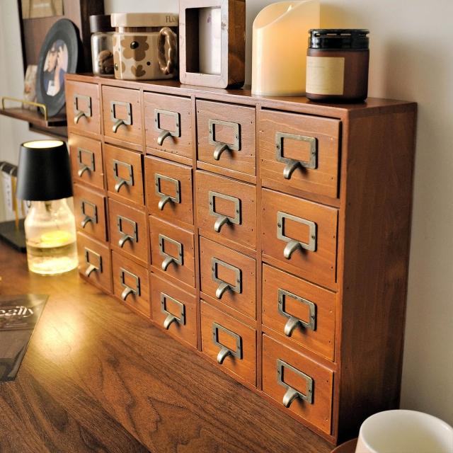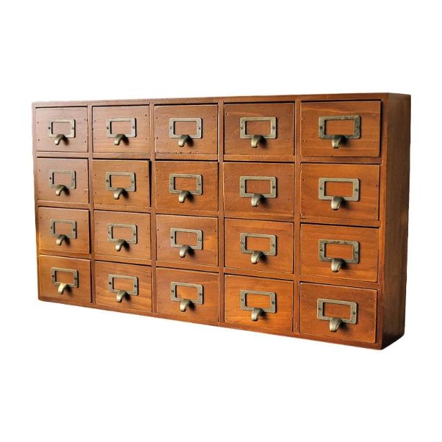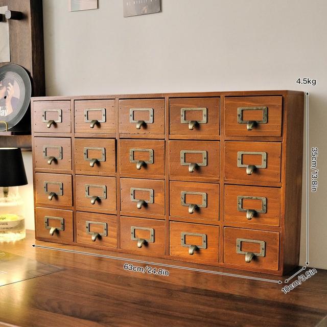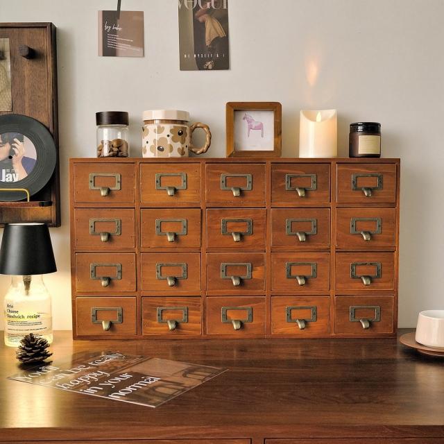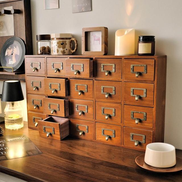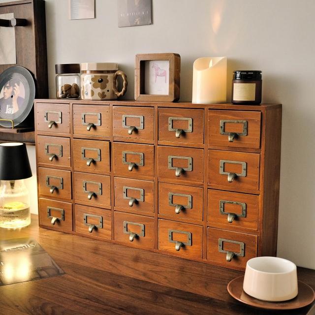 復古木質抽屜式藥櫃桌面收納櫃化妝品飾品木盒子中藥材小型收納櫃