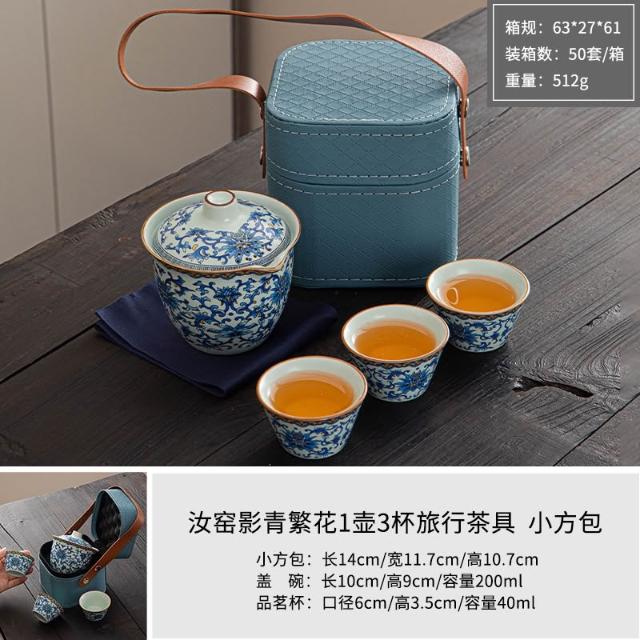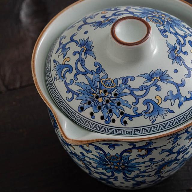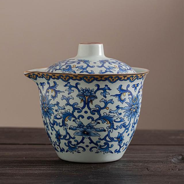 汝窯青花有福三才蓋碗復古功夫茶具 家用陶瓷 泡帶不燙手杯旅行戶外 MMLD10244D