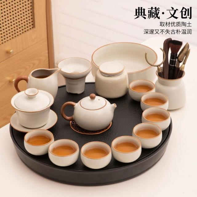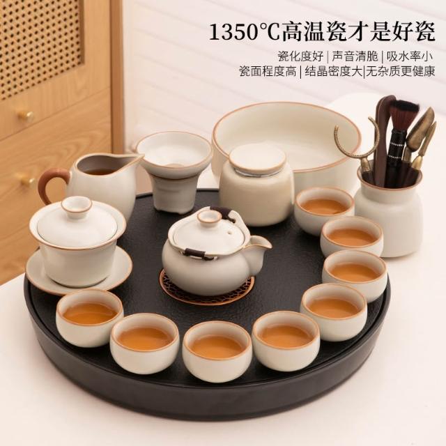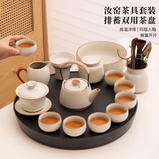大全套茶盤茶具 一體套裝汝窯陶瓷 功夫泡茶壺喝茶杯茶臺一整套家用 MMLD10244D