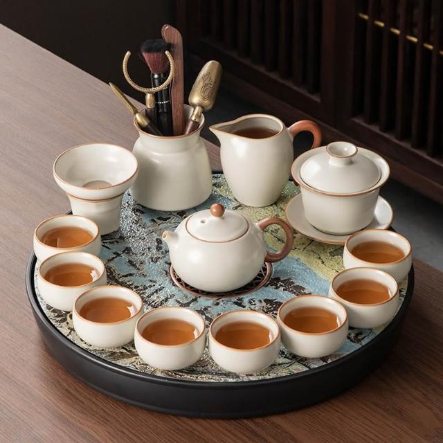 汝窯陶瓷 功夫茶具套裝 家用辦公室喝茶泡茶專用茶壺茶杯茶盤手抓壺 MMLD10244D