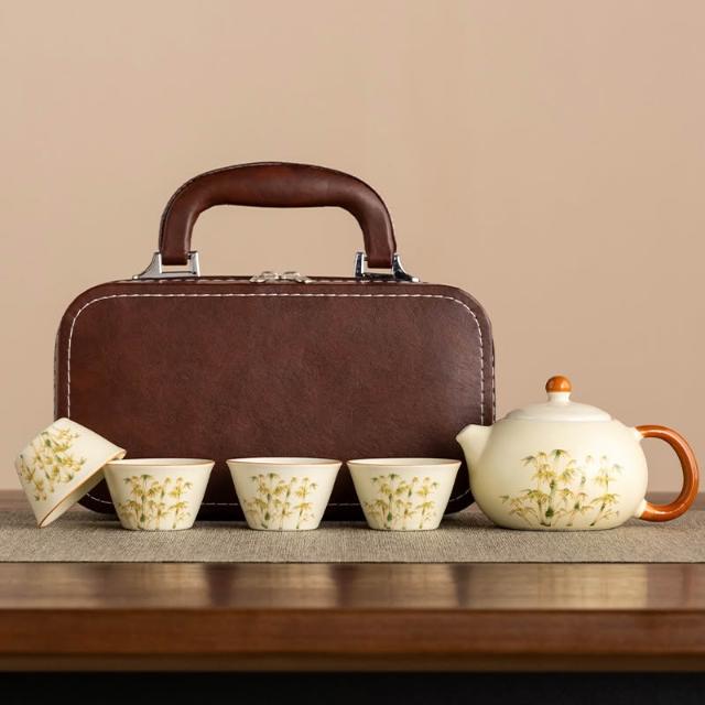 中式美德化陶瓷 汝窯富竹旅行茶具套裝 企業功夫茶壺禮物可定印茶器 MMLD10244D