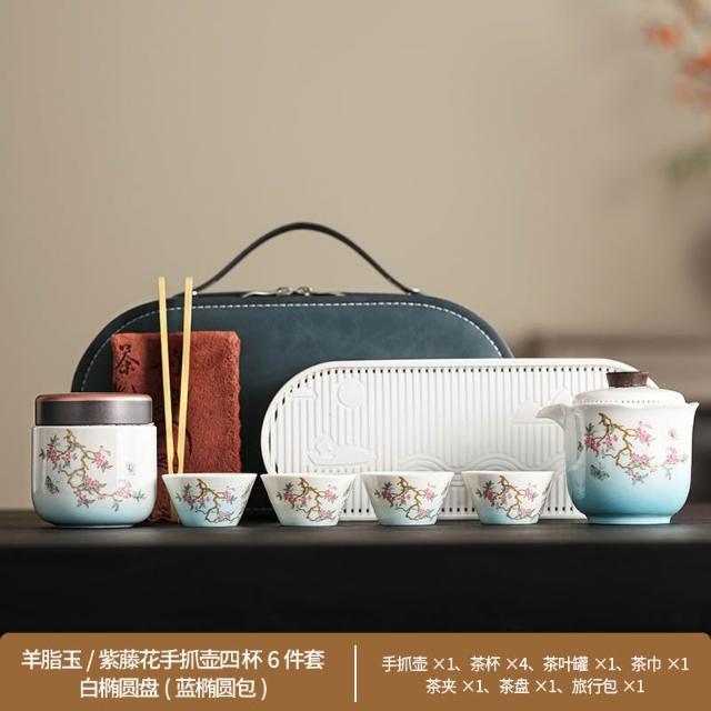 羊脂玉紫藤花功夫茶具套裝 家用輕奢高檔辦公室半自動泡茶茶杯禮盒 MMLD10244D