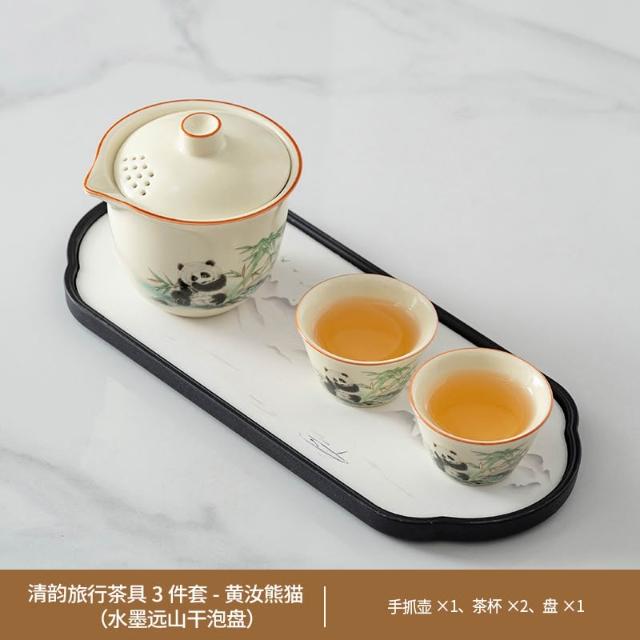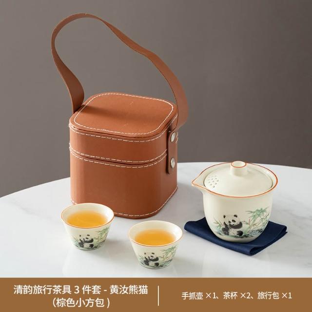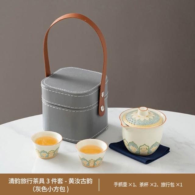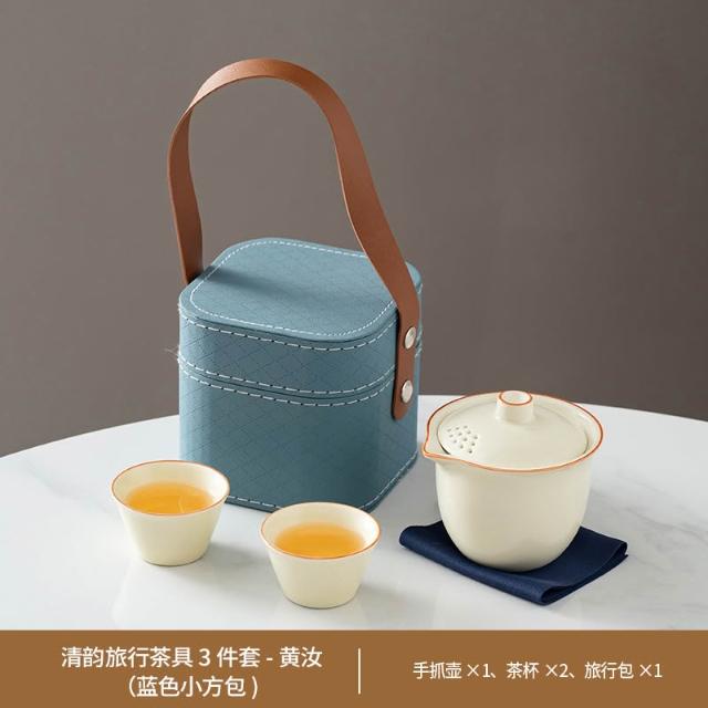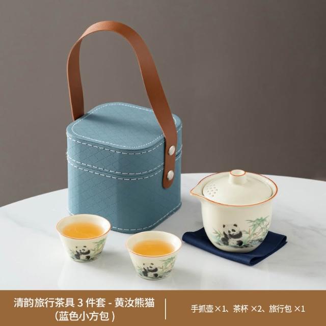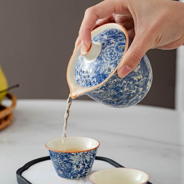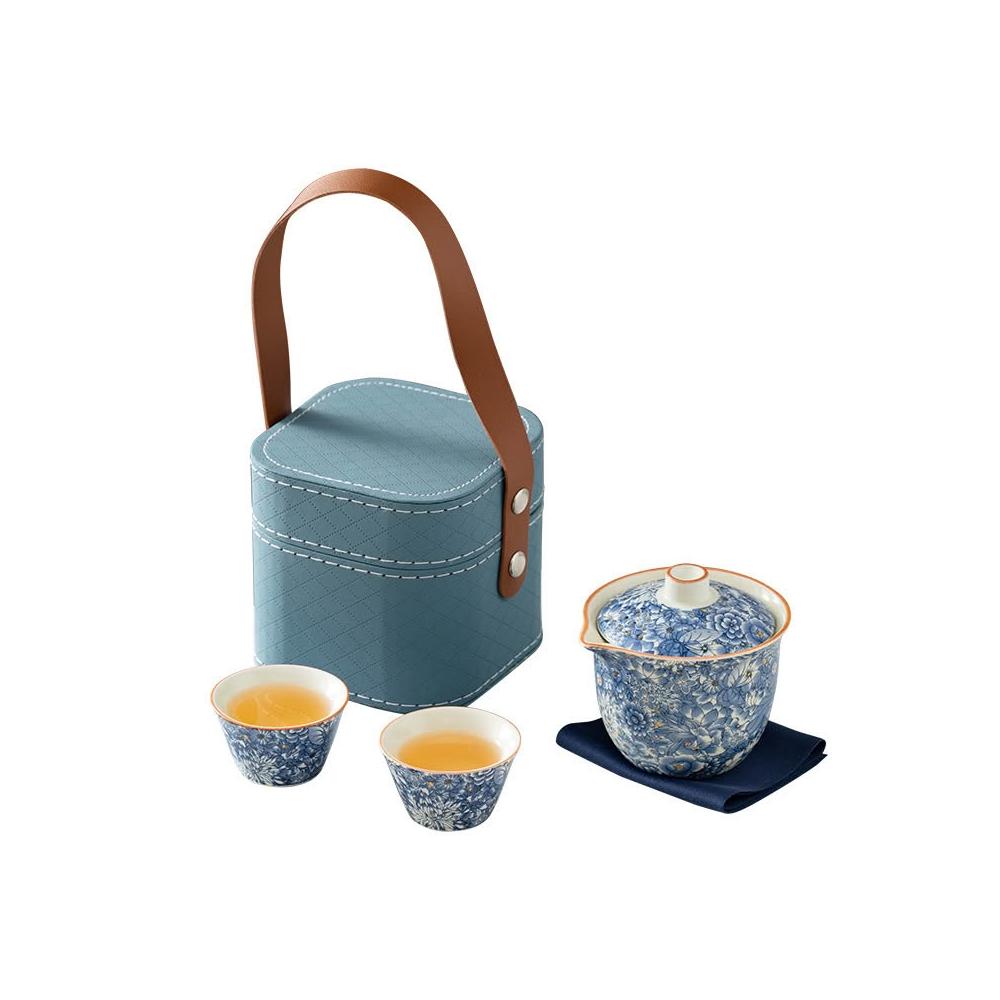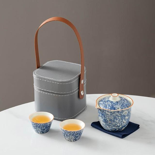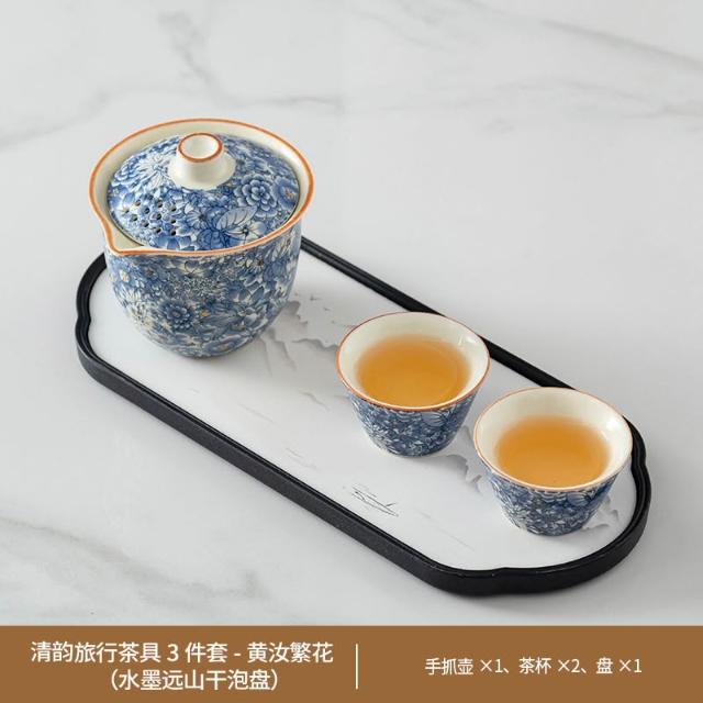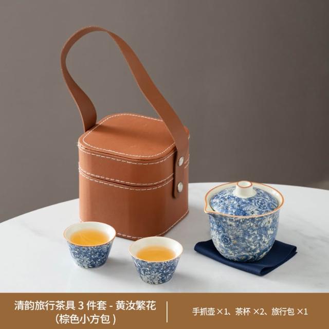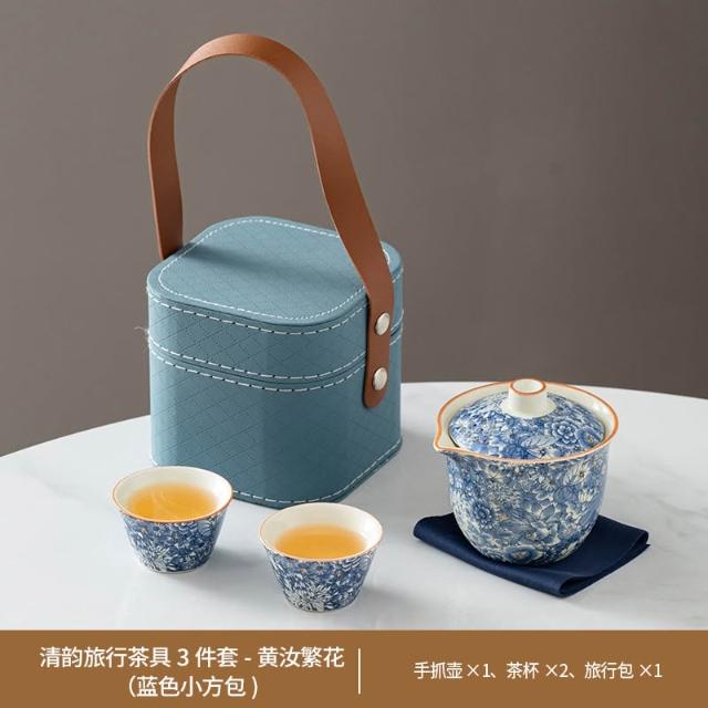 汝窯繁花旅行茶具 商務禮品旅行茶具 快客杯一壺三杯便攜式蓋碗小套 MMLD10244D