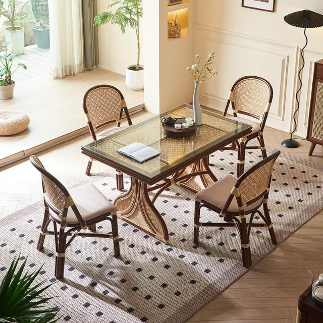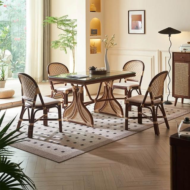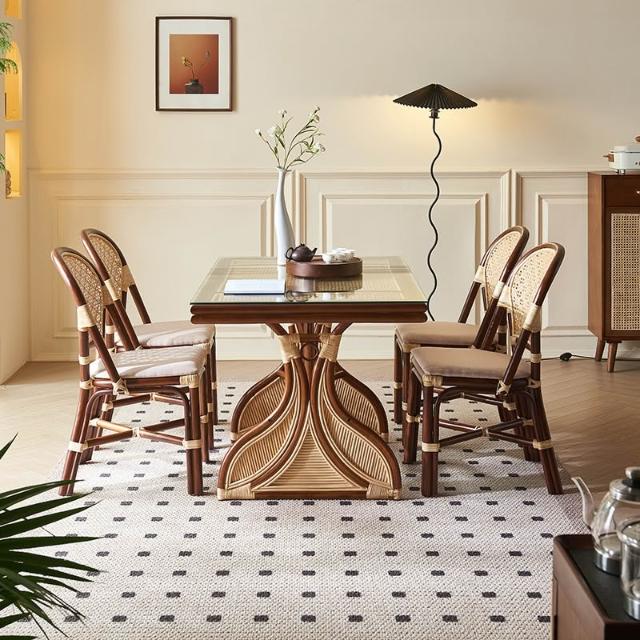 東南亞藤編 餐桌復古鄉村創意藝術 餐桌椅組合 民宿客棧長方形飯桌 MMLD10251D