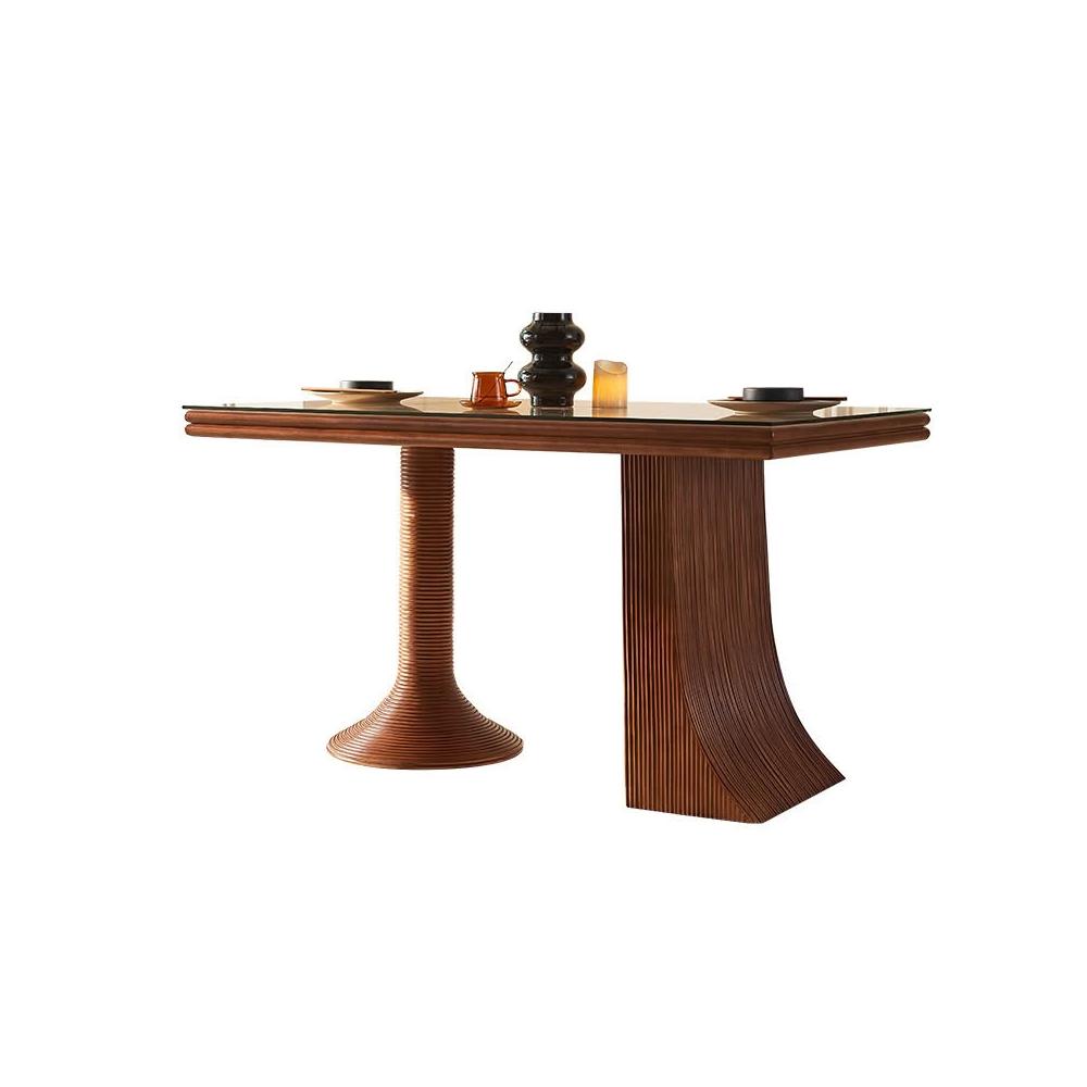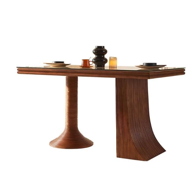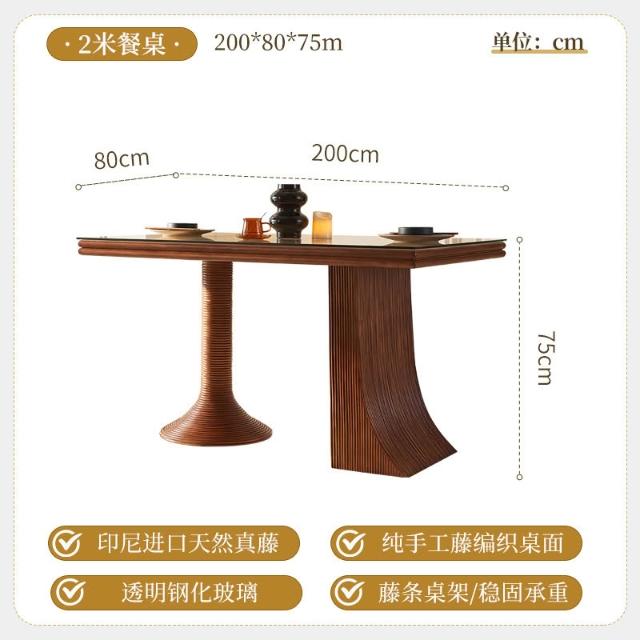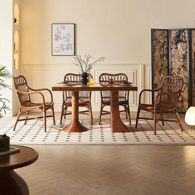 新中式實木 餐桌中古風藝術 餐廳 餐桌椅子組合 家用現代簡約藤編藤椅 MMLD10251D