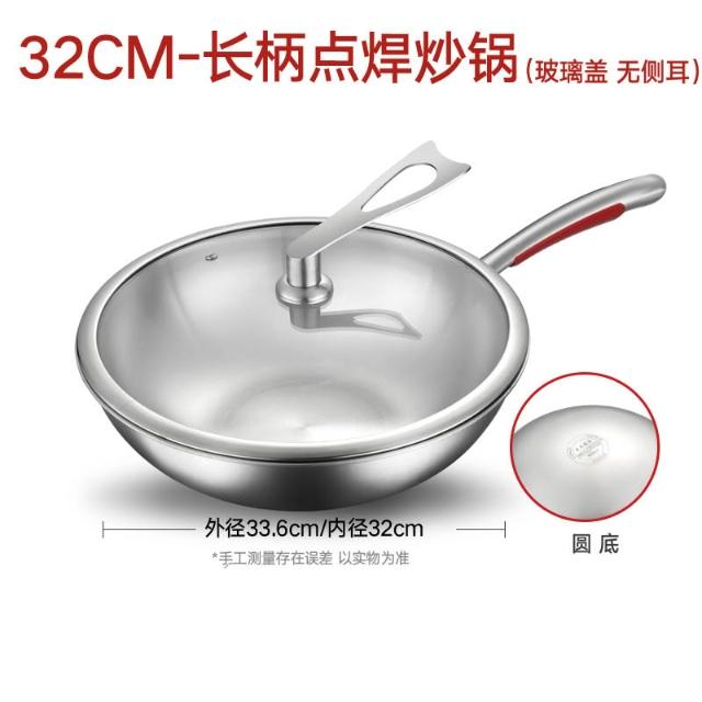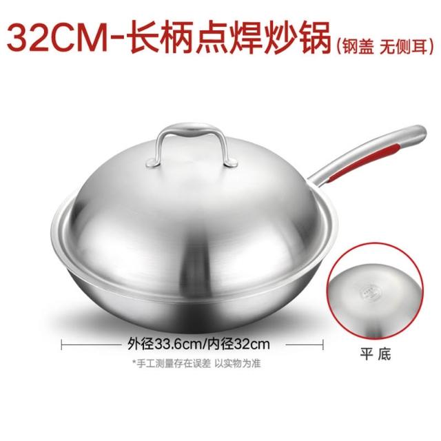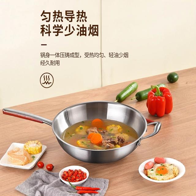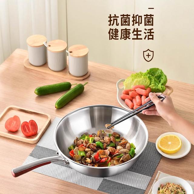 不銹鋼炒鍋 家用304食品級加厚無涂層圓底炒菜鍋 平底炒鍋 炒菜鍋 MMLD113D