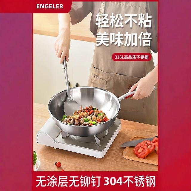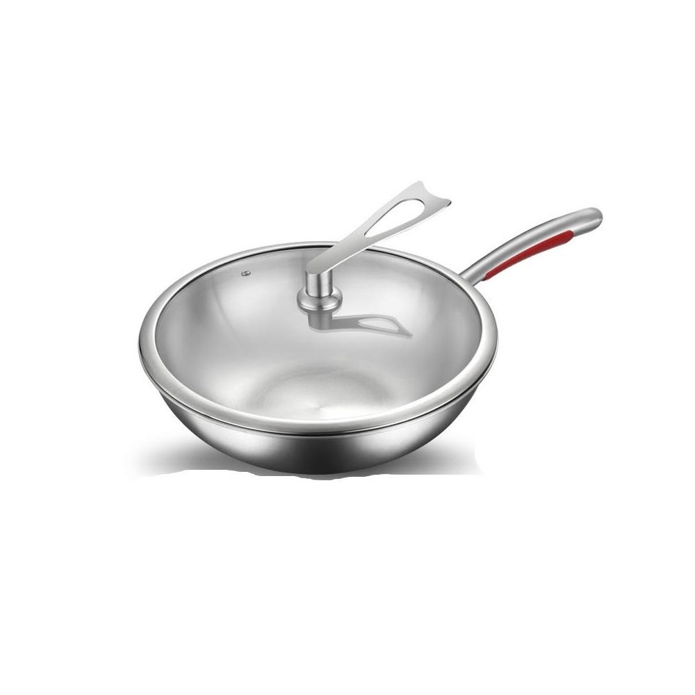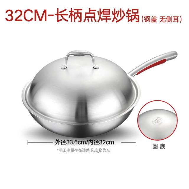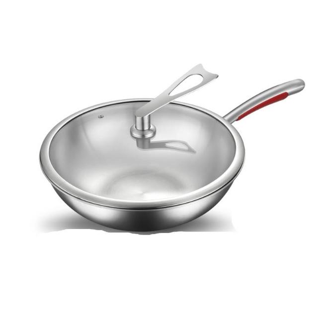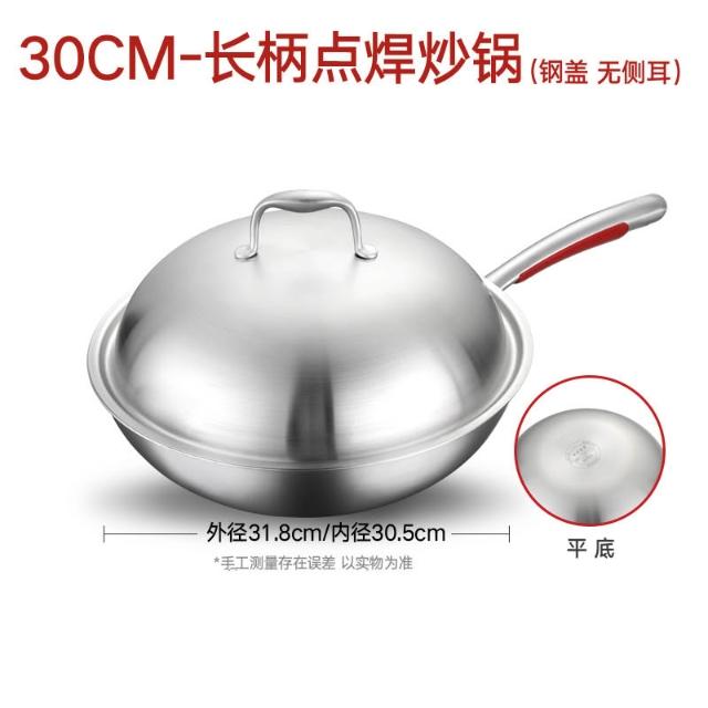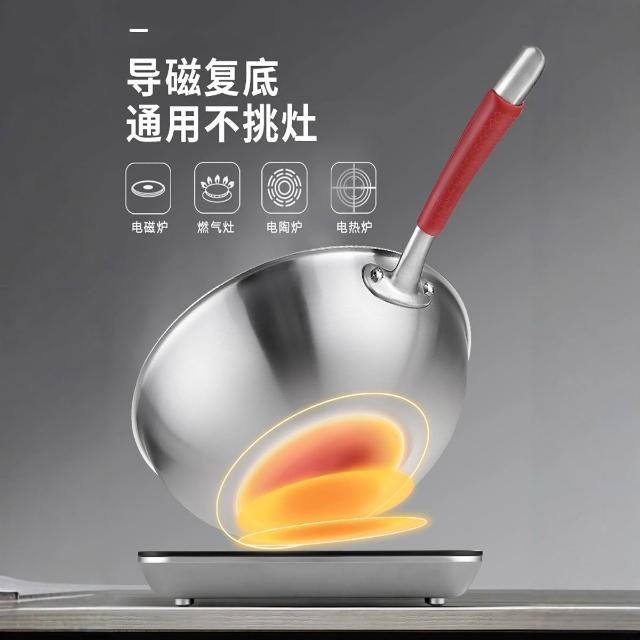 不銹鋼炒鍋 家用304食品級加厚無涂層圓底炒菜鍋 平底炒鍋 炒菜鍋 MMLD113D