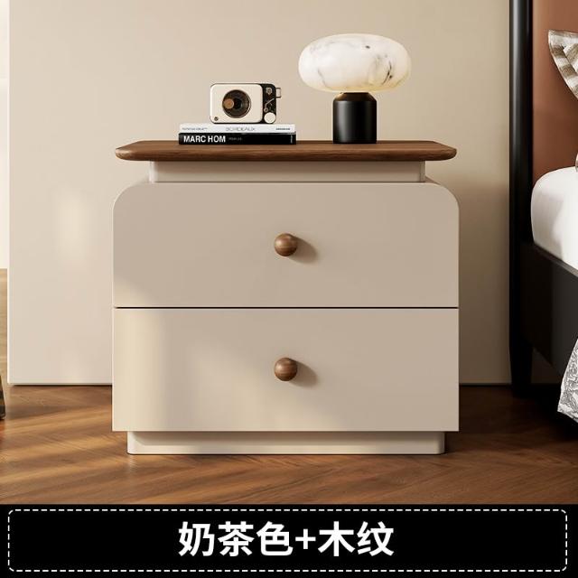 中古奶油風創意設計實木 烤漆床頭櫃 臥室家用小型輕奢高級感收納櫃 MMLD111225D
