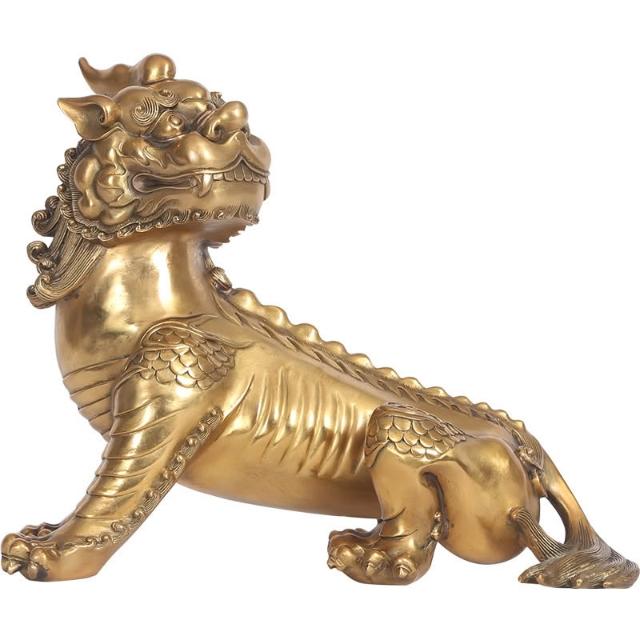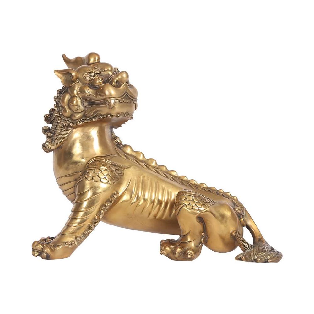九華山諦聽地藏王坐騎獨角神獸黃銅銅擺件客廳辦公室裝飾開業禮品 MMLD1118D