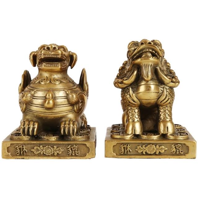 黃銅貔貅擺件家居辦公室工藝品公母四方迷你貔貅一對擺設銅裝飾品 MMLD1118D