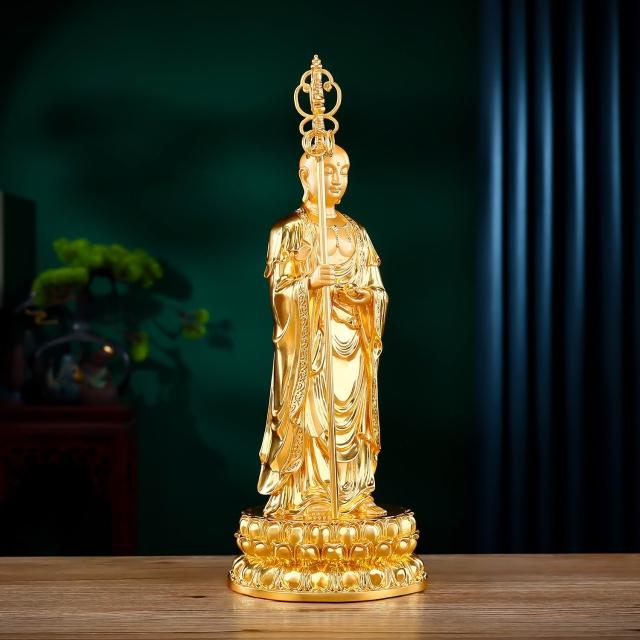 X九華山地藏王菩薩貼金立像家居室內供奉地藏菩薩像黃銅佛像擺件 MMLD1118D