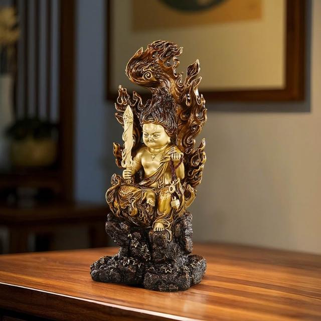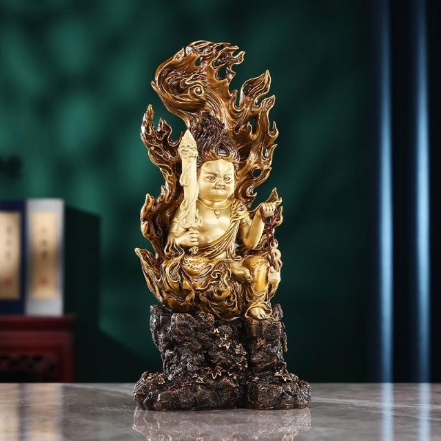 黃銅不動明王擺件家居辦公室桌面供奉佛像童形不動明王坐像工藝品 MMLD1118D