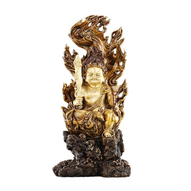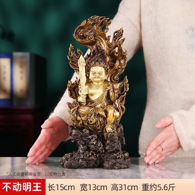 黃銅不動明王擺件家居辦公室桌面供奉佛像童形不動明王坐像工藝品 MMLD1118D
