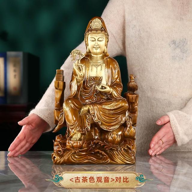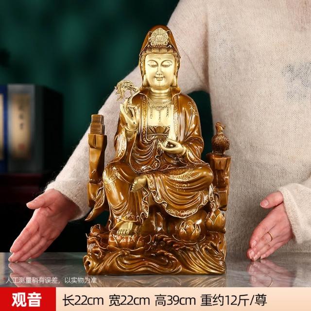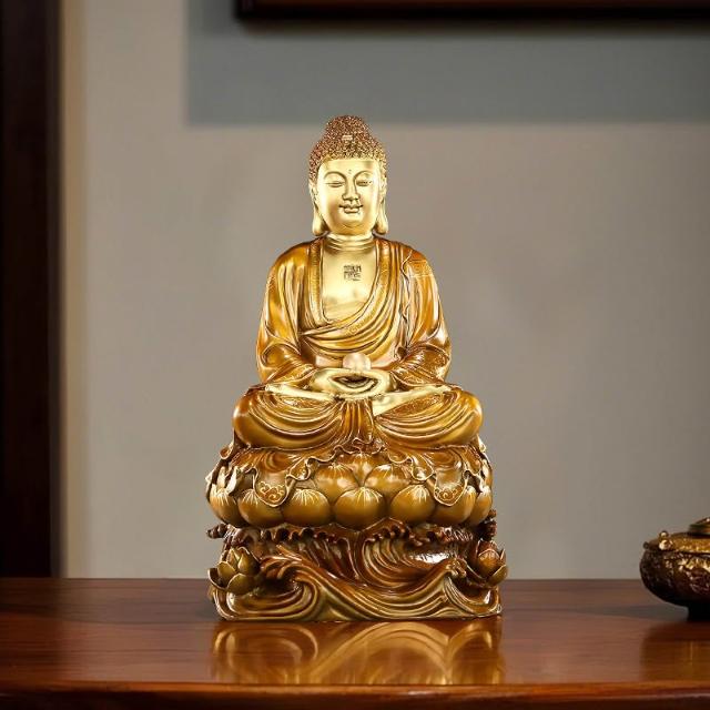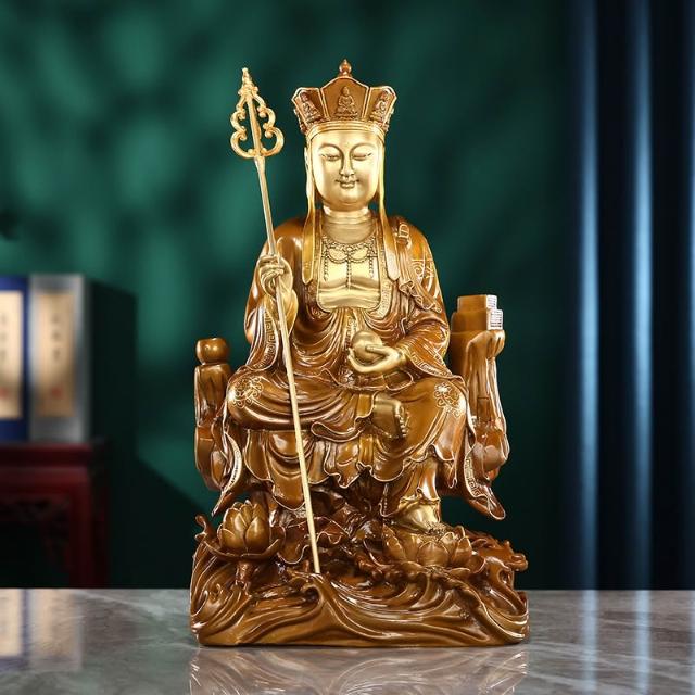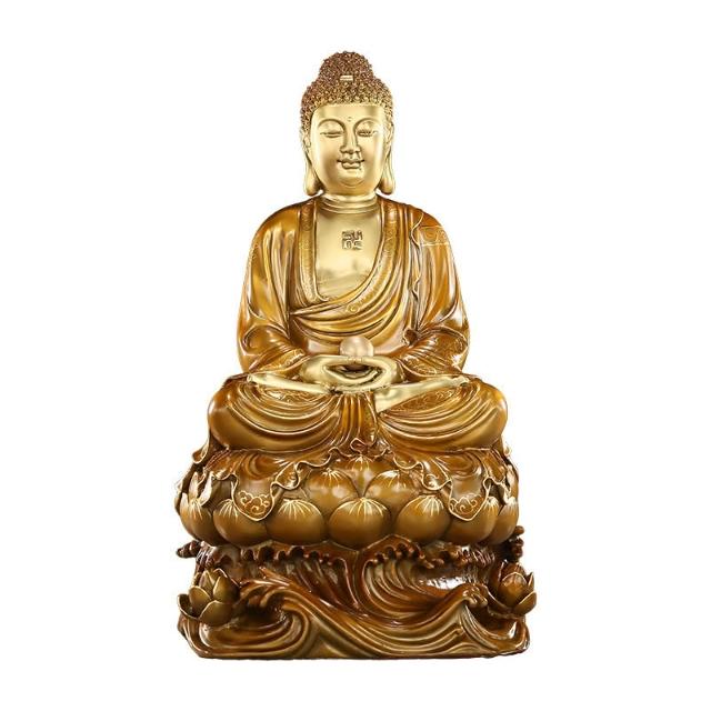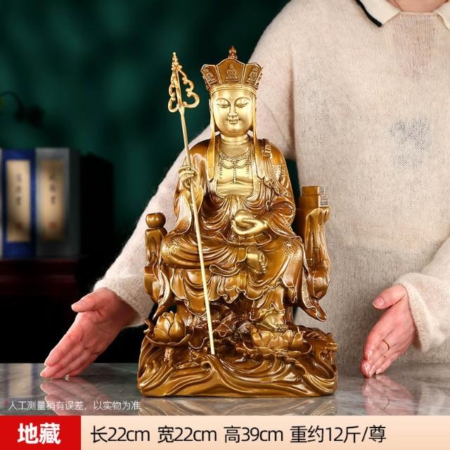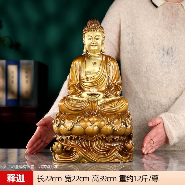 黃銅娑婆三圣擺件工藝品九華山地藏王銅像 觀音釋迦家居供奉坐像 MMLD1118D