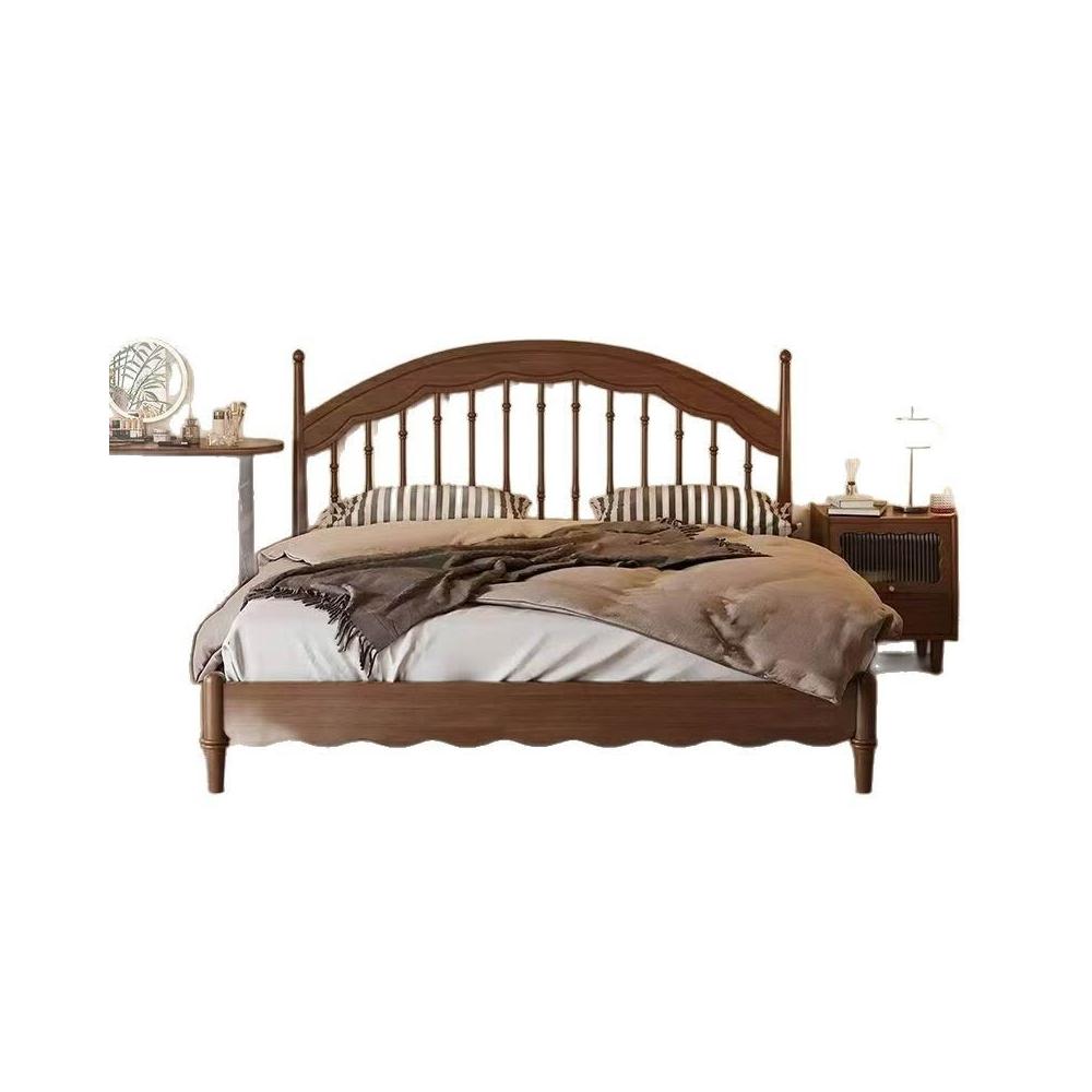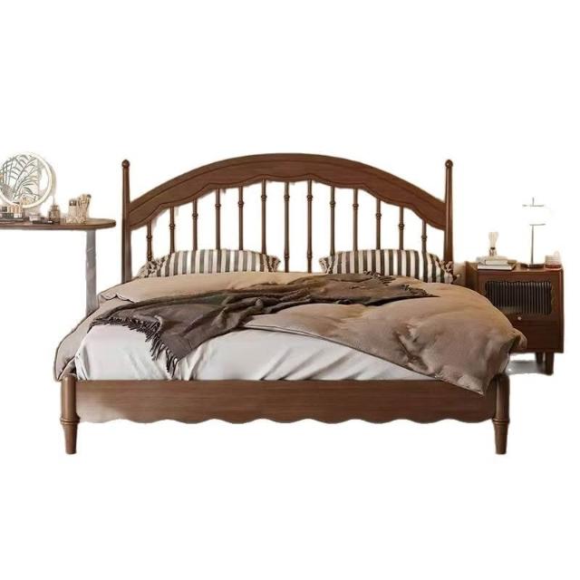 全實木溫莎床 中古風主臥美法式復古雙人床 新中式胡桃木色豎琴大床 MMLD1120D